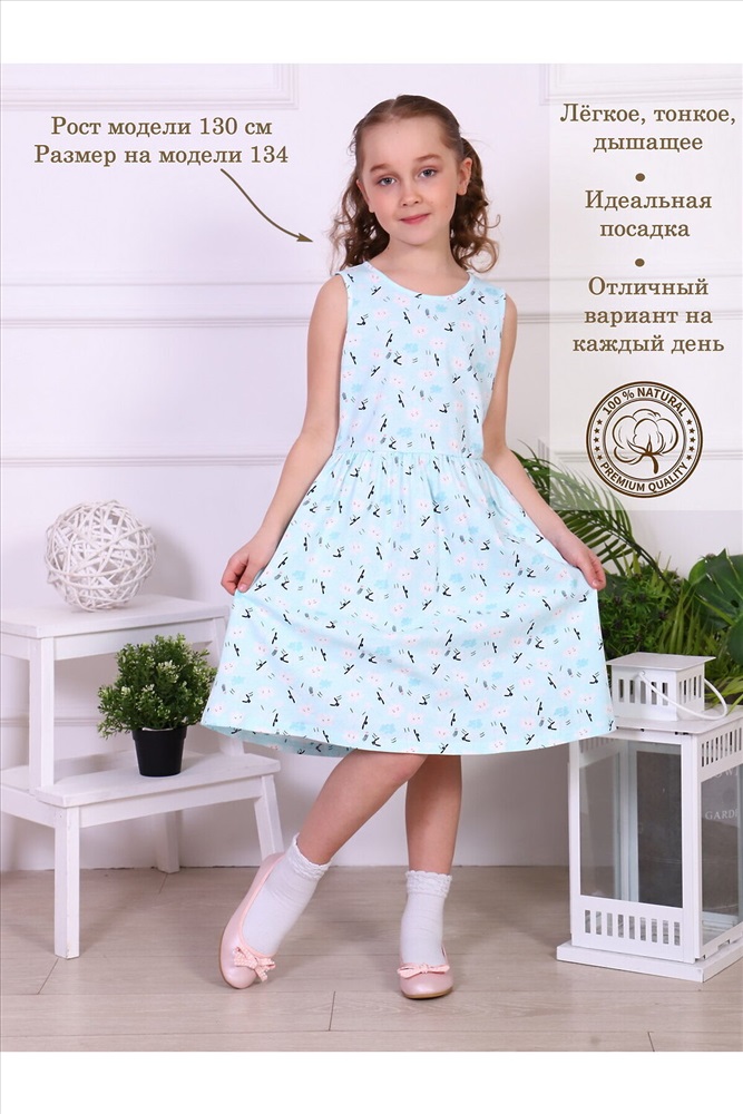 ID товара: 878286 Состав: 100% Хлопок Сезон: Весна/Лето Длина: Миди Фасон: Расклешенное Рукав: без рукавов Основная ткань: Кулирка Стиль: Повседневный Страна бренда: Россия Страна производства: Россия Легкое хлопковое платье-сарафан для девочки. Яркие красивые расцветки разнообразят гардероб юных модниц. Свободный крой и дышащий материал - то, что нужно для летних прогулок. Отлично подходит для повседневной носки и для детского садика. Для сохранения первоначальных свойств изделия, важно соблюдать рекомендации по уходу. Комментарии к товару