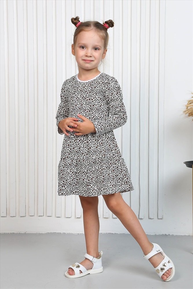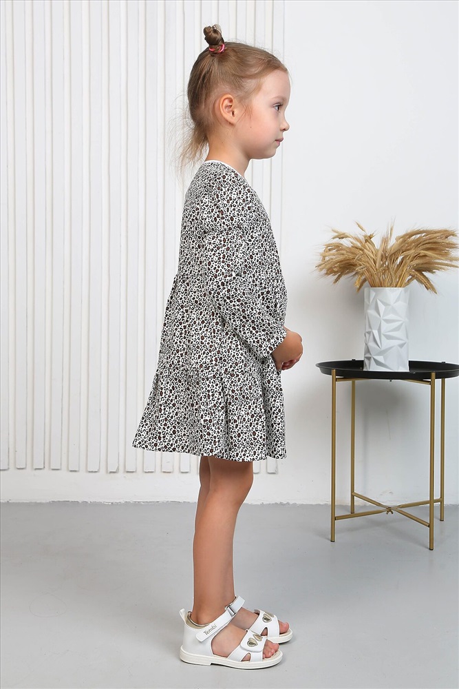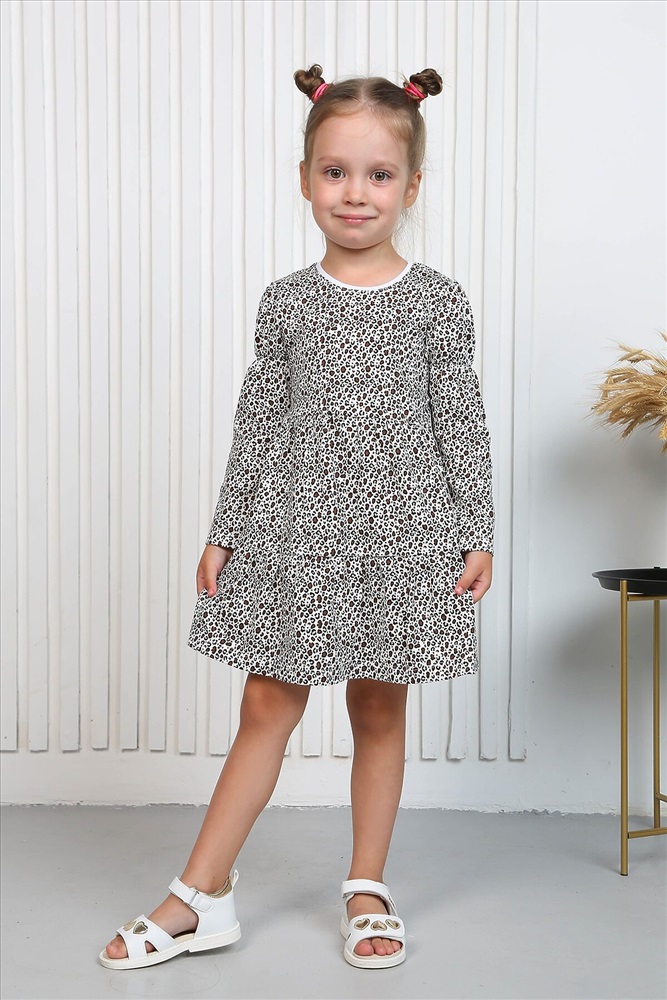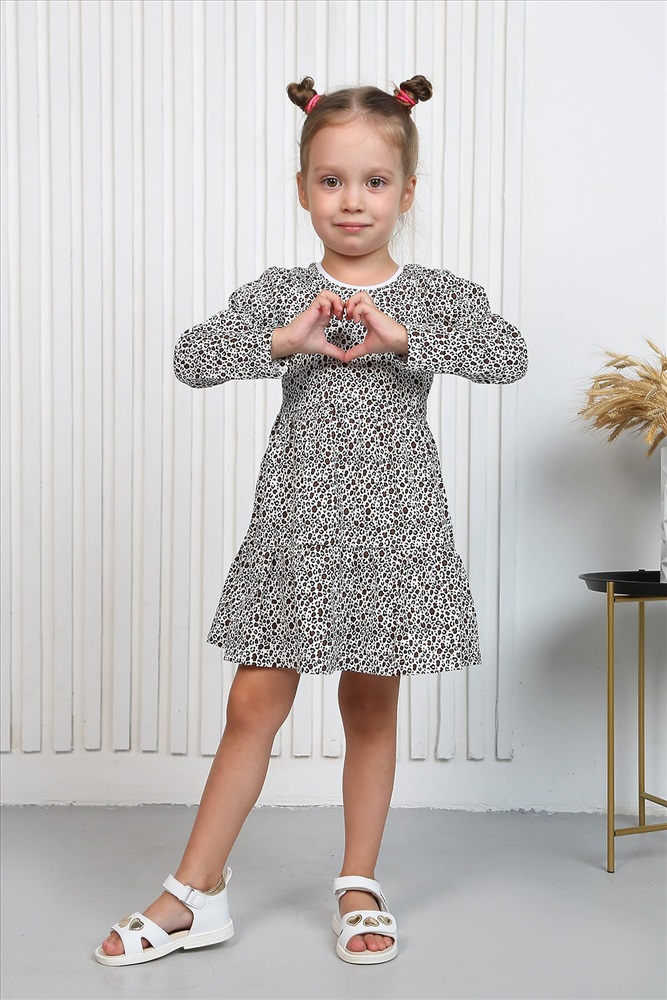 Платье из легкой хлопковой ткани, отрезное по талии. Рукав втачной, длинный с небольшой сборкой по окату и на спандексе в верхней части, что создает эффект двойного рукава с фонариком. Нижняя часть полочки и спинки - двухъярусная сборка. Горловина отделана узкой обтачкой из эластичной ткани. Ткань гипоаллергенная, хорошо пропускает воздух.