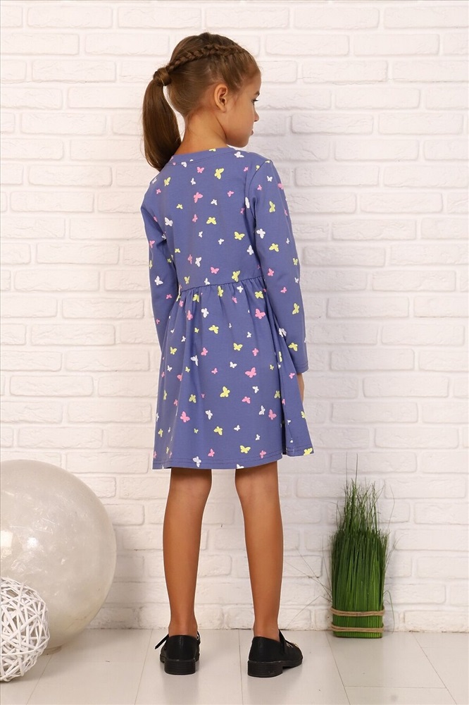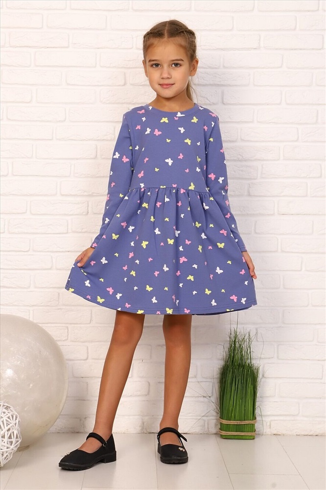 ID товара: 881099 Состав: 92% Хлопок, 8% Лайкра Сезон: Демисезон Длина: До колена Фасон: Расклешенное Рукав: длинные Вырез горловины: Округлый Рисунок: бабочки Декоративные элементы: Принт Основная ткань: Кулирка с лайкрой Стиль: повседневный Страна бренда: Россия Страна производства: Россия Платье для девочек дошкольного и младшего школьного возраста, из трикотажного полотна кулирка с лайкрой с рисунком. Платье прилегающего силуэта, отрезное и расклешенное от линии талии, с втачным длинным одношовным рукавом, с обтачкой в горловине. Низа рукавов и нижней части платья подогнуты. По шву втачивания обтачки в горловину проложена отделочная строчка. Комментарии к товару
