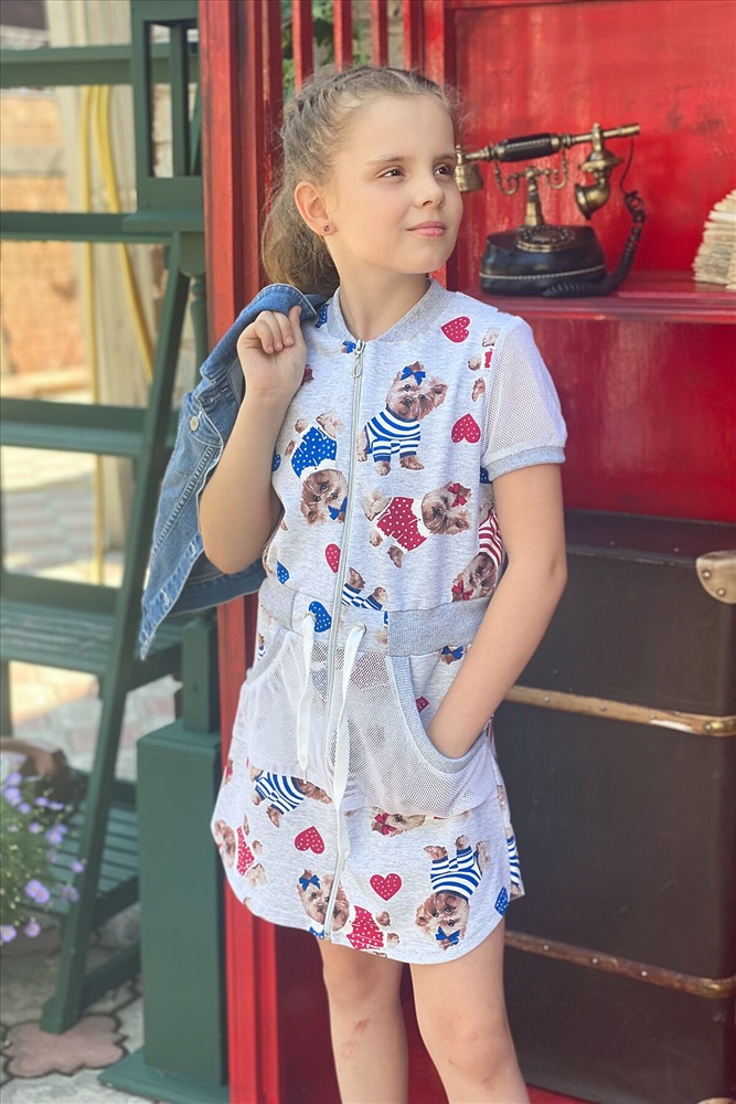 Платье детское на молнии, рукава и карманы из ткани сеточка.