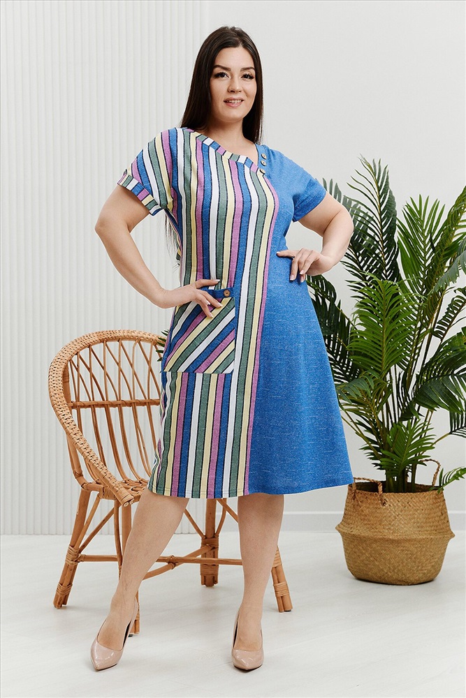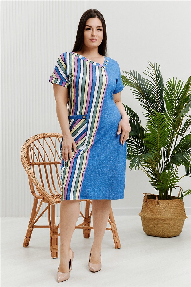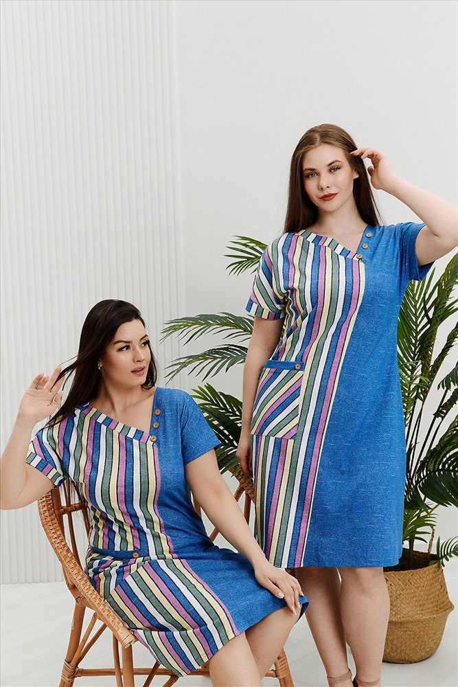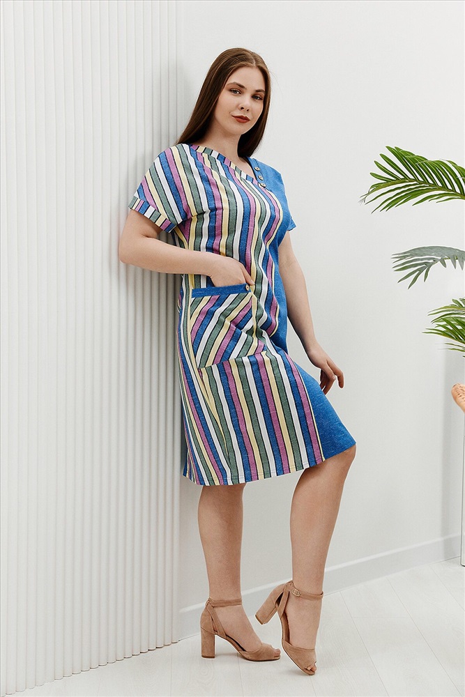 ID товара: 884613 Состав: Хлопок 100% Сезон: Весна/Лето Длина: Миди Фасон: Свободный крой Рукав: Короткие Вырез горловины: V-образный Рисунок: Полоски Декоративные элементы: Пуговицы Основная ткань: Хлопок | Кулирка Стиль: Повседневный Страна бренда: Россия Страна производства: Россия Женское платье с фигурным вырезом горловины, декорировано кокосовыми пуговицами. Сбоку накладной карман. Комментарии к товару