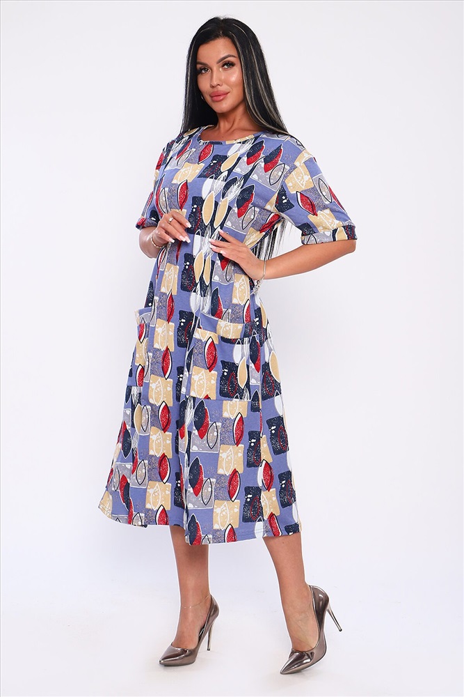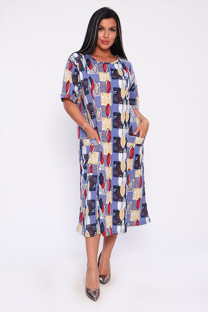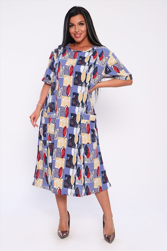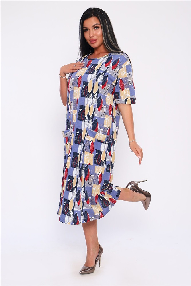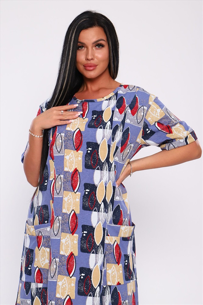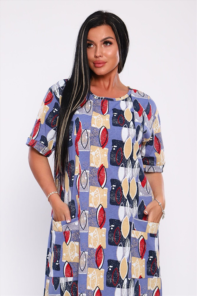 ID товара: 893153 Состав: 100% Хлопок Сезон: Весна/Лето Длина: Ниже колена Фасон: Свободный крой Рукав: короткие Вырез горловины: Округлый Рисунок: Абстракция Тип карманов: Накладные Основная ткань: Хлопок Стиль: Повседневный Вид ткани: Кулирка Страна бренда: Россия Страна производства: Россия Платье полуприлегающего силуэта с отрезными бочками и накладными карманами. Рукава короткие с манжетами. Идеальный повседневный вариант. Комментарии к товару