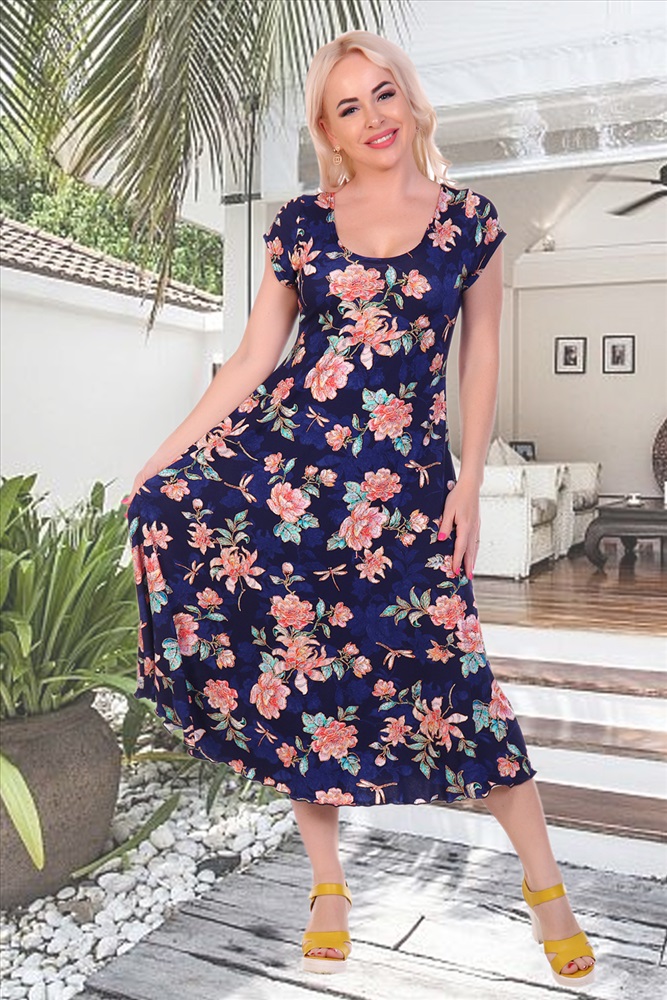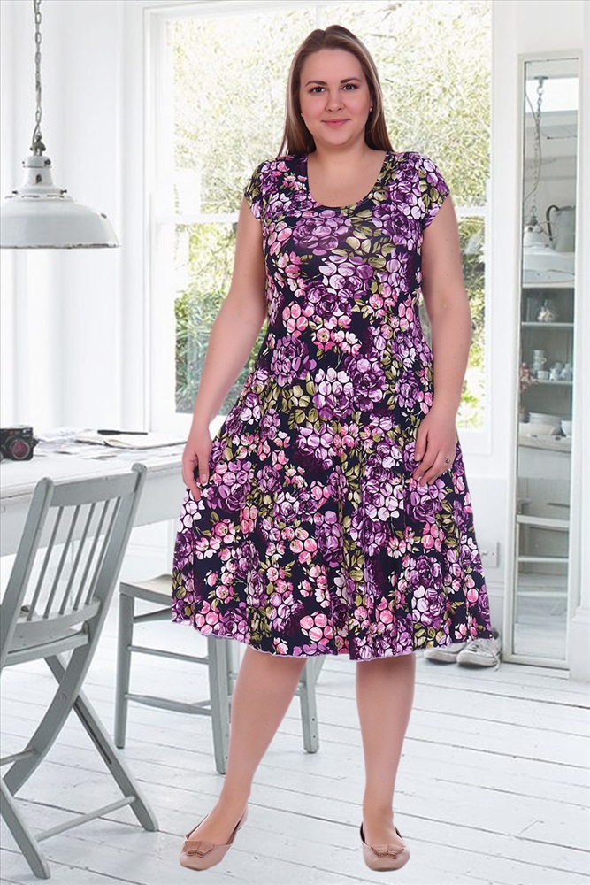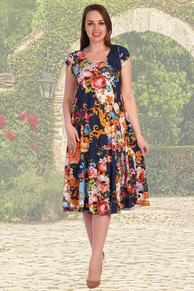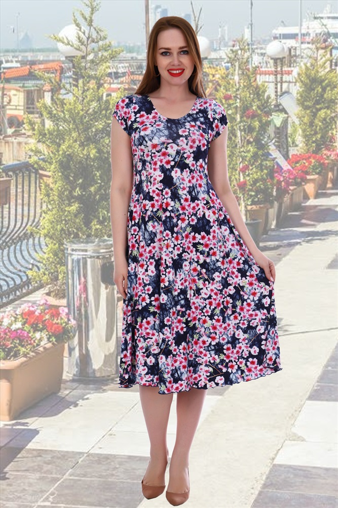 Застежка: без застежки Женское платье из вискозы расклешенного силуэта. Рукава, горловина, подол обработаны на плоскошовной машине