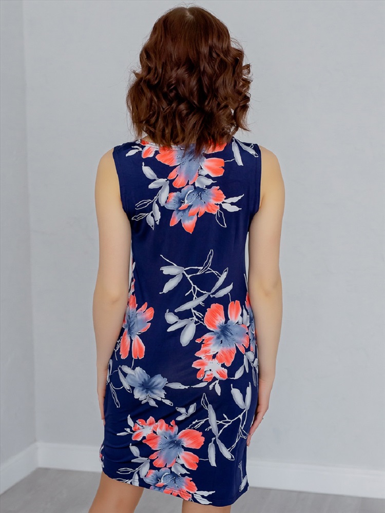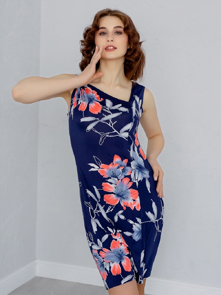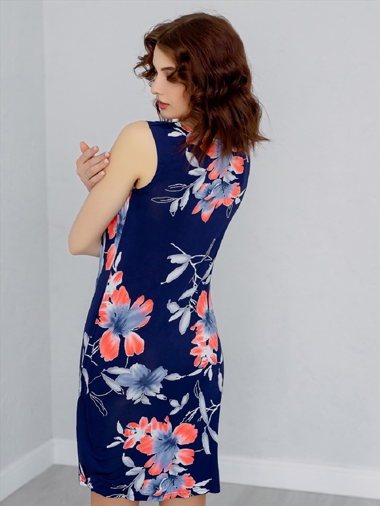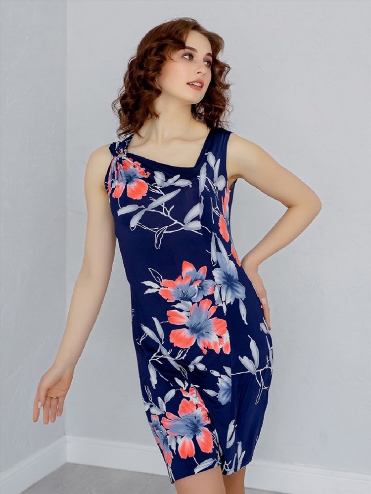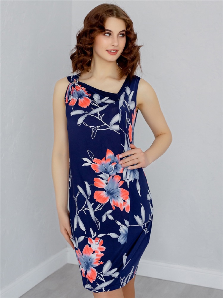 Застежка: без застежки Платье прямого силуэта, длиной чуть ниже линии колена. По переду, в области груди ассиметричная драпировка, которая собрана на металлическое кольцо - подкову.