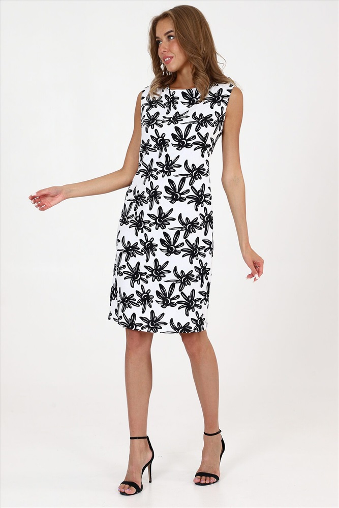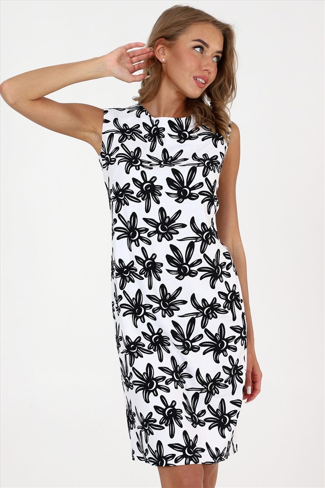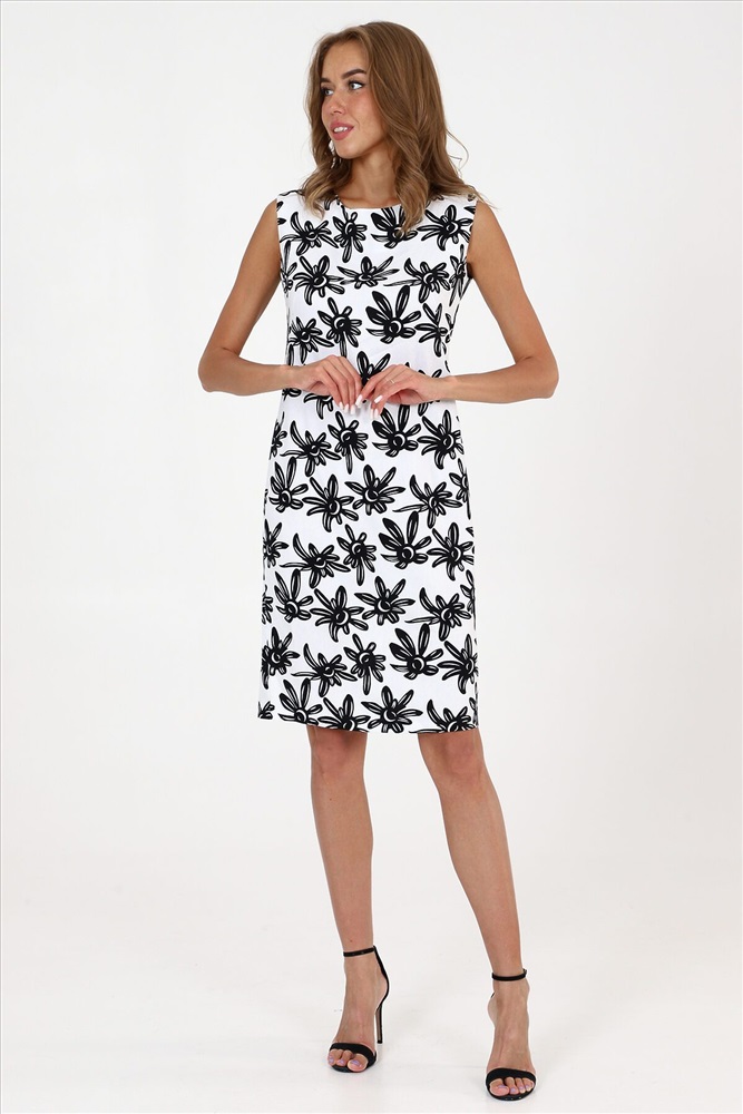 ID товара: 904153 Состав: Полиэстер 100% Сезон: Весна/Лето Длина: Миди Фасон: Приталенное Рукав: без рукавов Вырез горловины: Лодочка Рисунок: цветочный Стиль: Романтический Вид ткани: Креп трикотажный Страна бренда: Россия Страна производства: Россия Классическое приталенное платье без рукавов с разрезом сзади. Простое и элегантное, оно является базовым элементом женского гардероба, на основе которого можно создавать множество разнообразных образов от делового до кокетливо-сексуального. Комментарии к товару