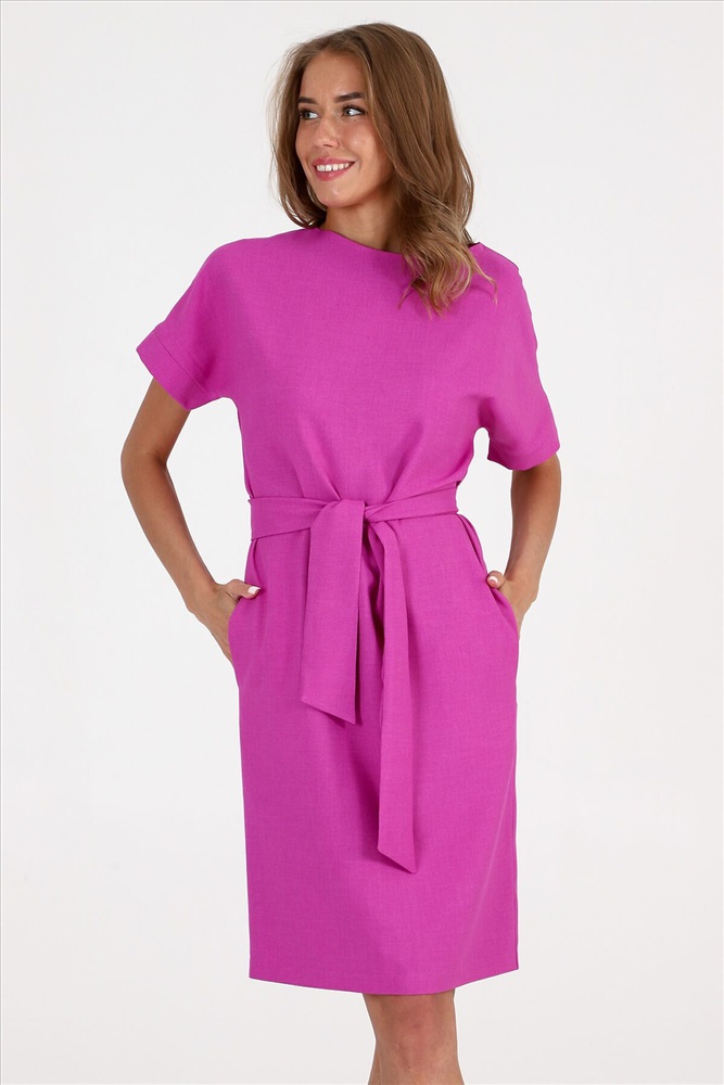 ID товара: 892993 Состав: Вискоза 60%, Полиэстер 35%, Эластан 5% Сезон: Весна/Лето Длина: Миди Фасон: Прямой Рукав: короткие Вырез горловины: Округлый Тип карманов: В боковом шве Декоративные элементы: Пояс Основная ткань: Вискоза Стиль: Повседневный Вид ткани: Лен Страна бренда: Россия Страна производства: Россия Платье прямого кроя - с поясом сочетает в себе строгость и женственность. Комментарии к товару