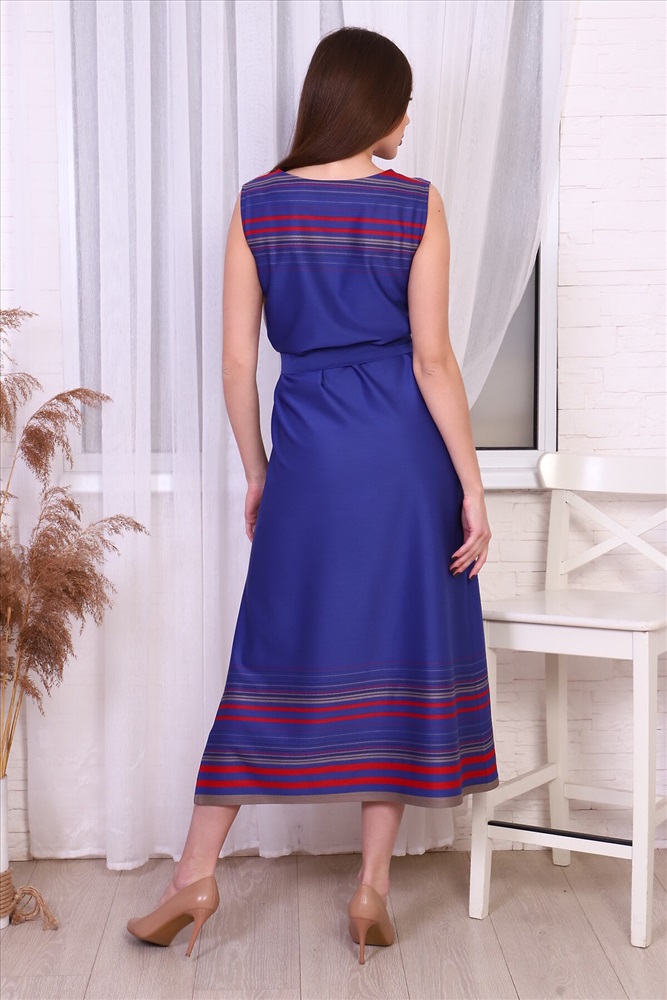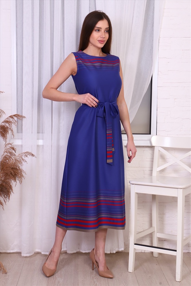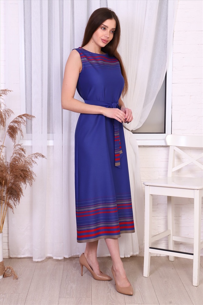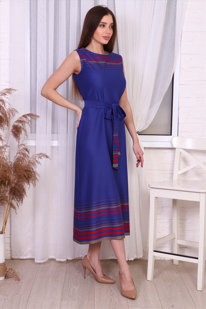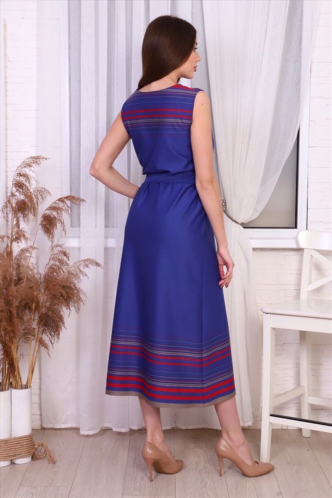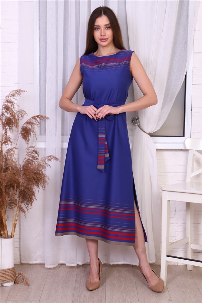 ID товара: 878885 Состав: Вискоза 60%; Полиэстер 35%; Эластан 5% Сезон: Весна/Лето Длина: Миди Фасон: Полуприталенный Рукав: без рукавов Вырез горловины: Округлый Основная ткань: Костюмная ткань Стиль: Повседневный Страна бренда: Россия Страна производства: Россия Практичное платье-трапеция, из ткани с купоном в полоску. Завязывается на пояс. Справа выполнен разрез Комментарии к товару