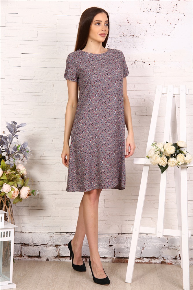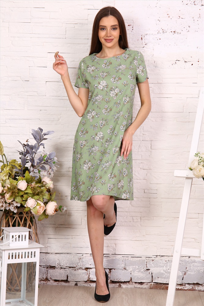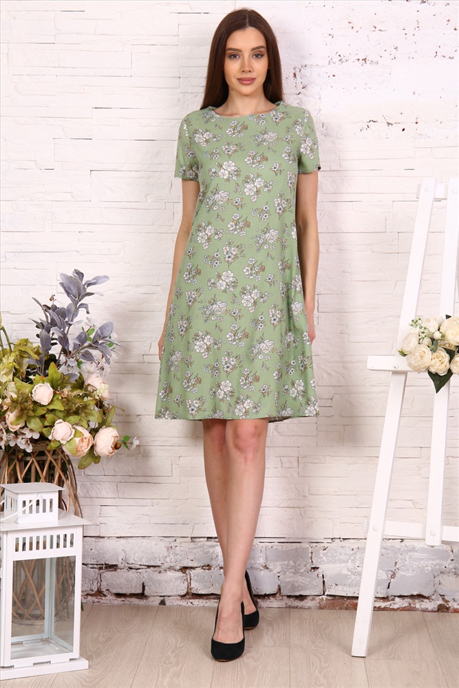 Воротник: без воротника Платье-трапеция с коротким рукавом. Обратите внимание, платья из разных тканей - в расцветках бежевый, голубой, зеленый и черный платья выполнены из искусственного шелка