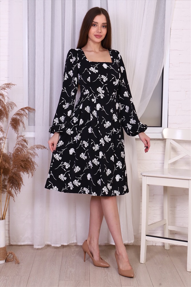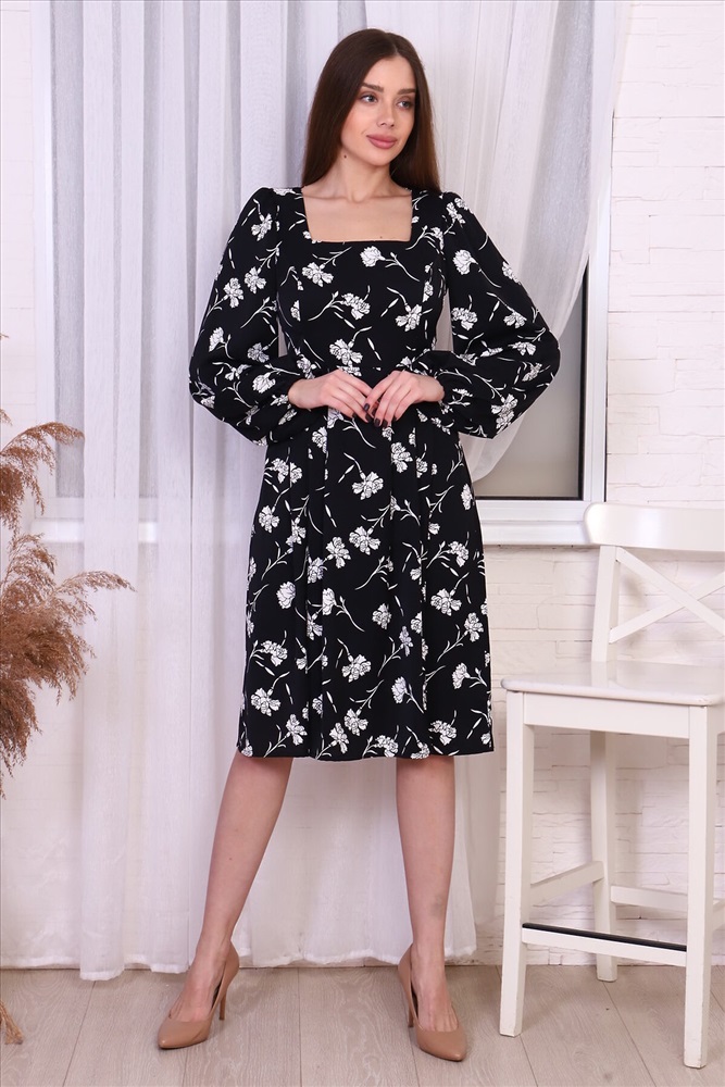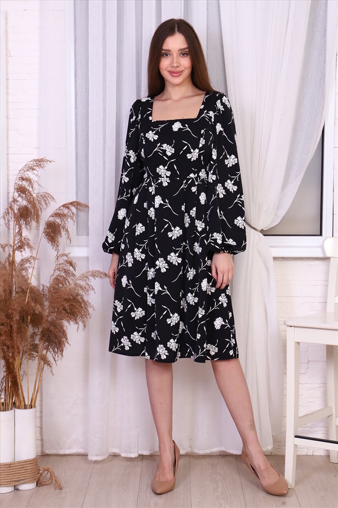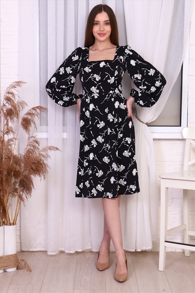 Страна производства: Россия Женственное платье с вырезом каре, объемными рукавами и широкой юбкой. Выполнено из приятной шелковистой ткани. Застежка-молния на спине