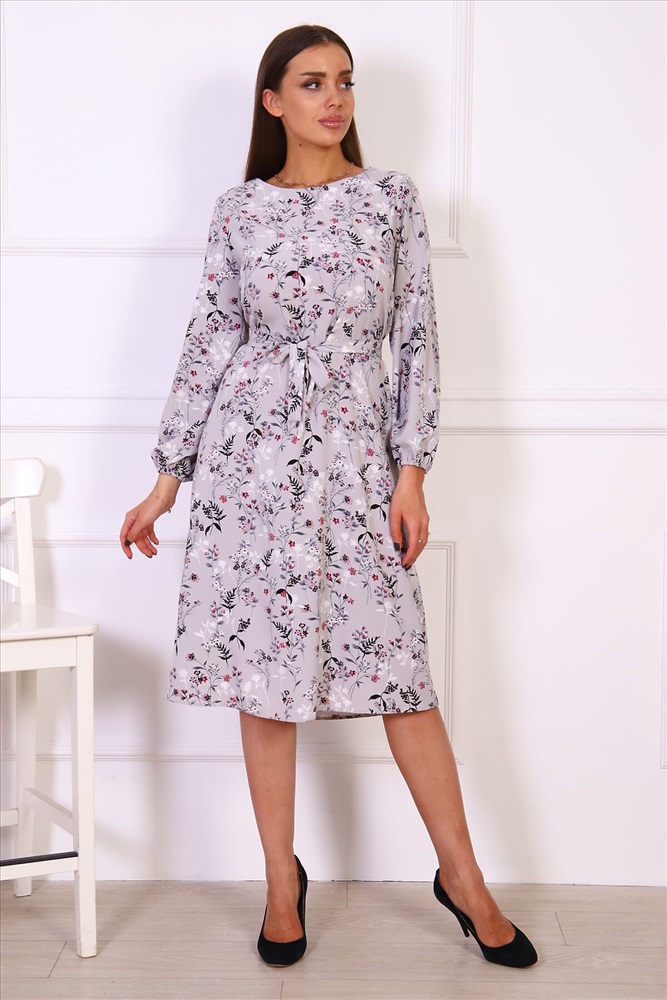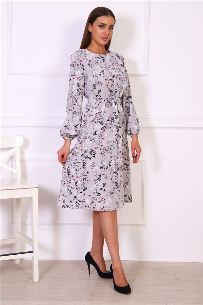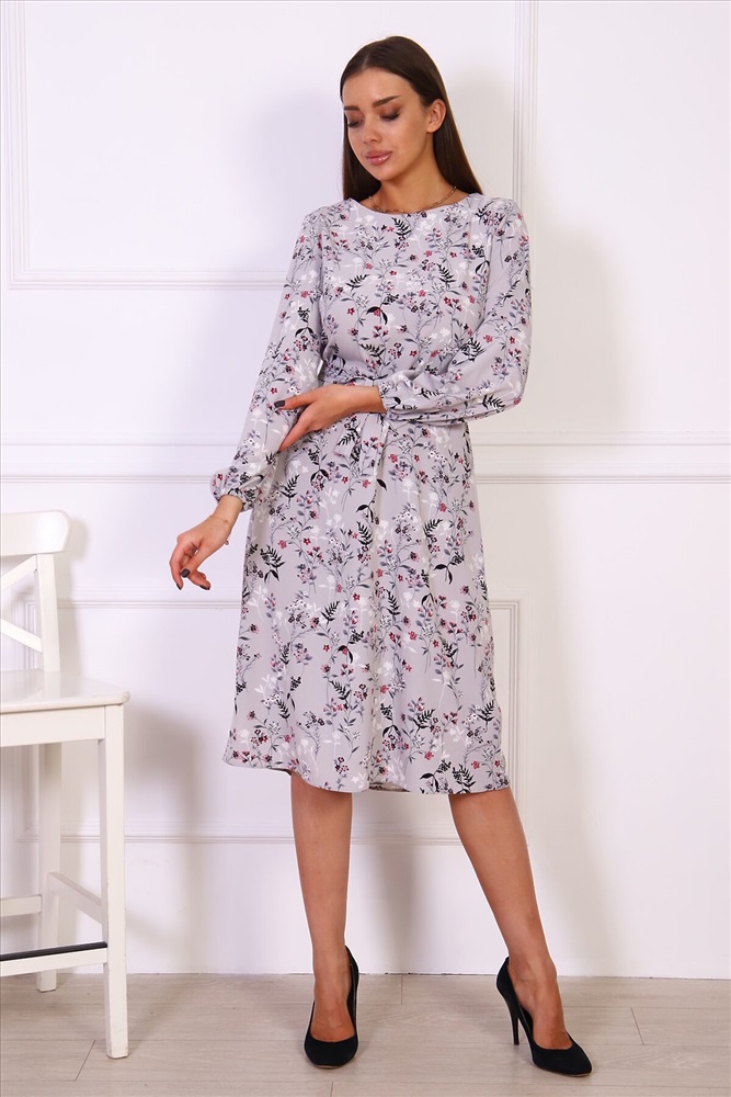 ID товара: 980477 Состав: Вискоза 60%; Полиэстер 35%; Эластан 5% Сезон: Весна/Лето Фасон: Свободный крой Рукав: Длинный Вырез горловины: Круглый Рисунок: растительный, цветочный Вид ткани: Поливискоза Страна бренда: Россия Страна производства: Россия Платье свободного силуэта, слегка расклешенное книзу. Платье можно носить как с поясом, так и без. Длинные прямые рукава внизу присборены на резинку. Комментарии к товару