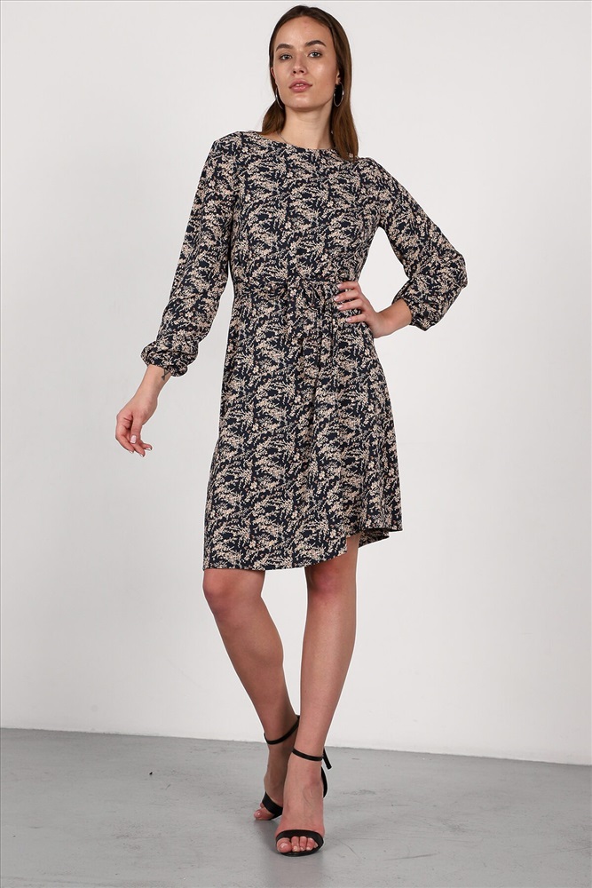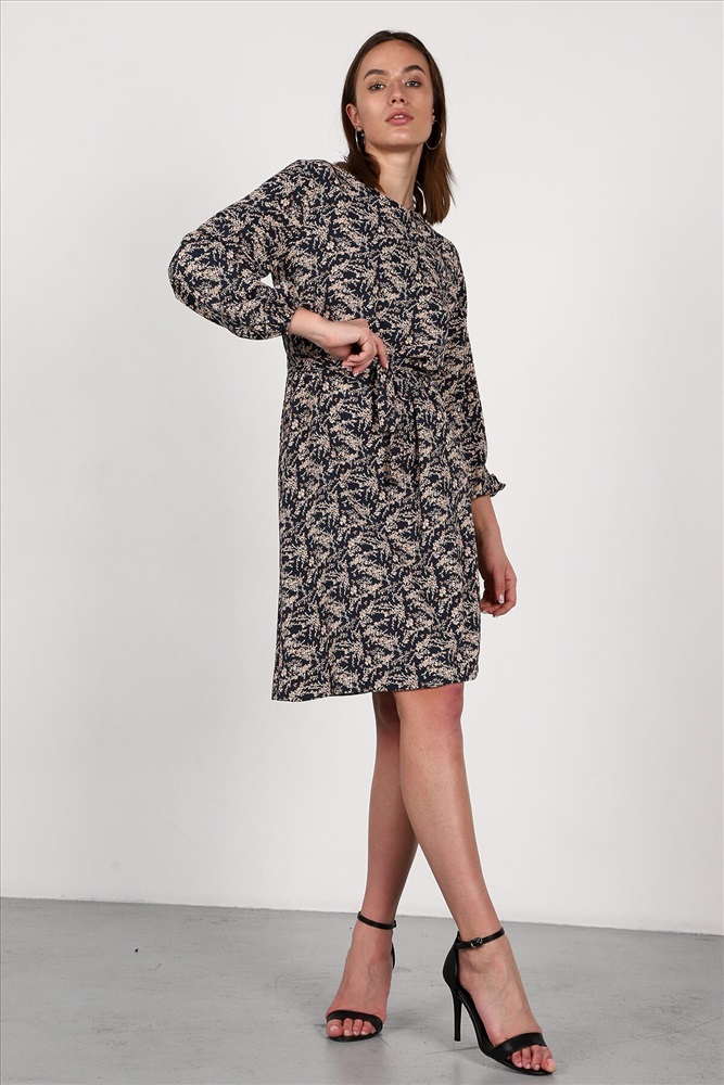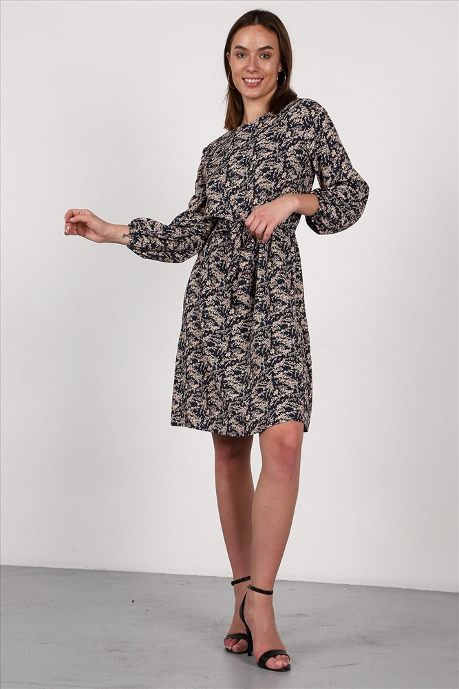 Страна производства: Россия Платье свободного силуэта, слегка расклешенное к низу. Платье можно носить как с поясом, так и без. Длинные прямые рукава внизу присборены на резинку.