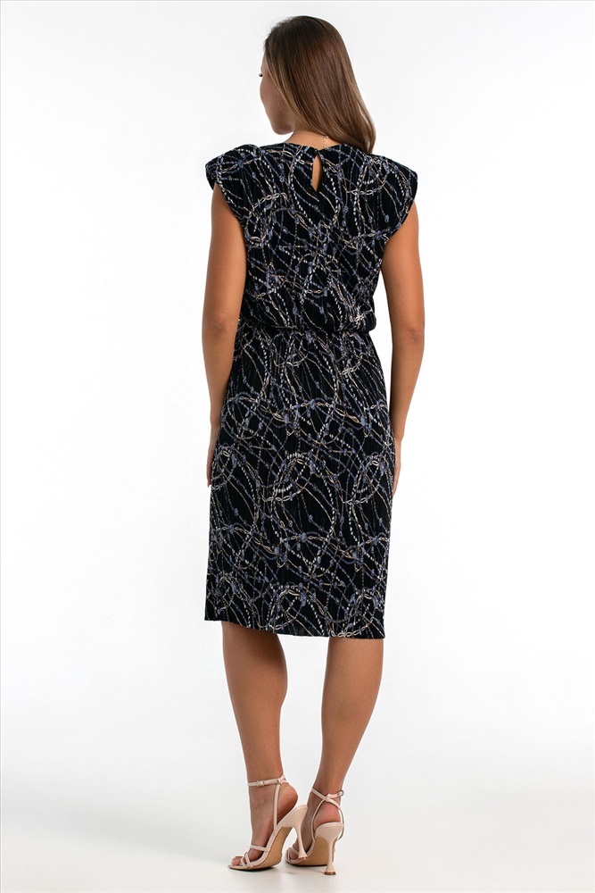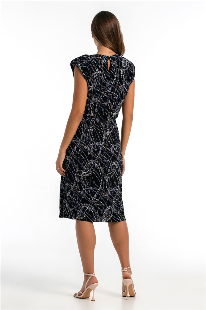 Застежка: пуговицы Свободное платье из жатой ткани без рукавов присборенное на талии резинкой. В комплект к платью идет пояс на кнопках.