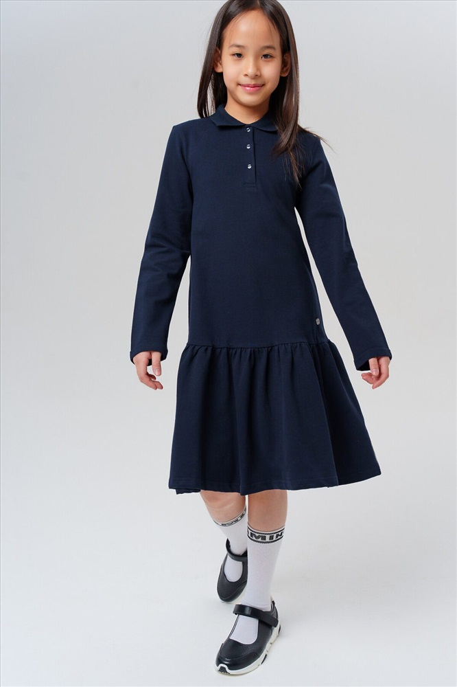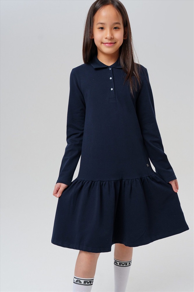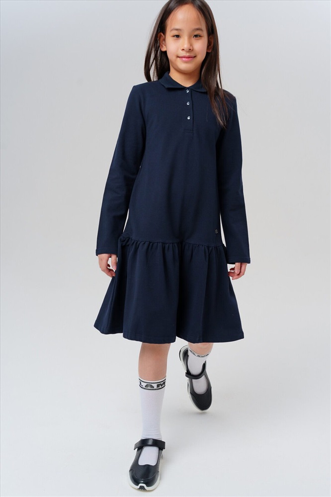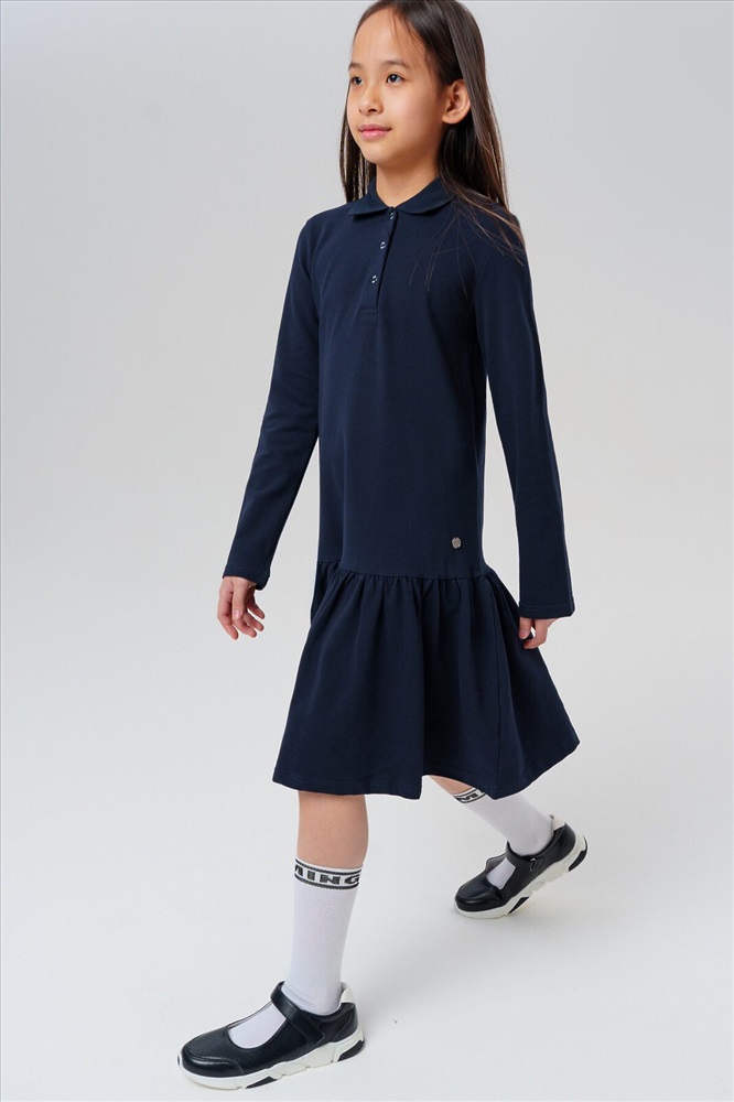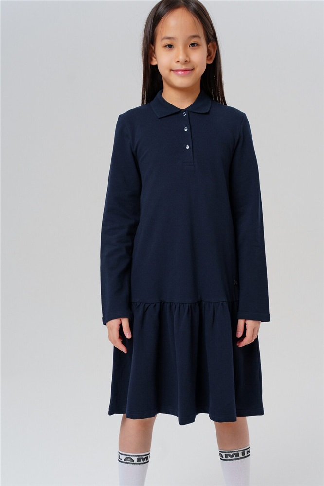 Страна производства: Китай Темно-синее школьное трикотажное платье поло для девочки-подростка