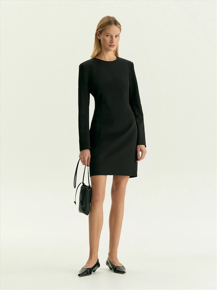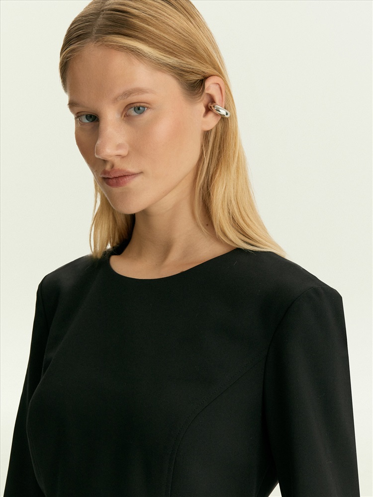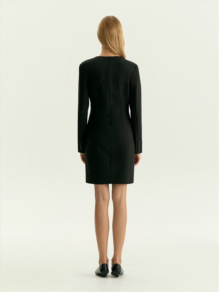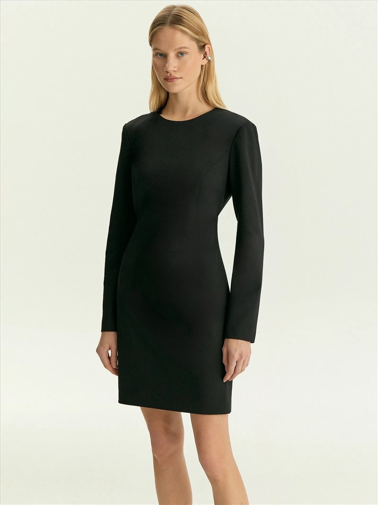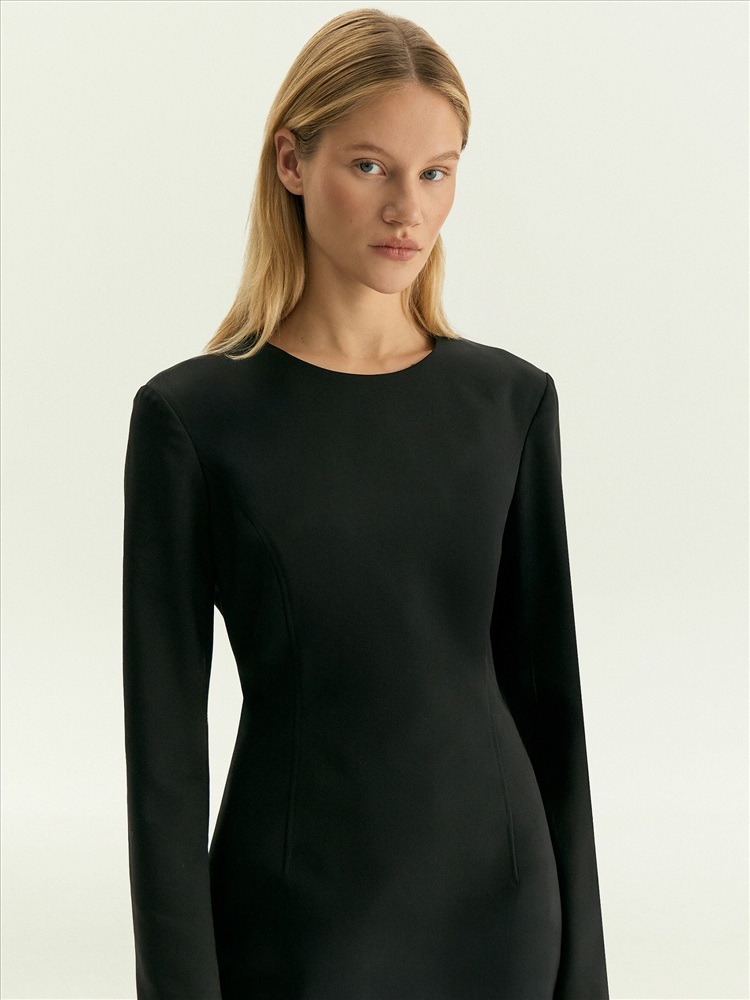 Лаконичное платье для офисных, повседневных и выходных образов. Комфортный материал наполовину состоит из натурального хлопка и содержит эластан. Приталенная модель с длинным рукавом и круглым вырезом имеет длину выше колена. Вытачки обрисовывают женственную фигуру и визуально вытягивают силуэт. Пуговицы на рукавах вносят изюминку и поддерживают деловое настроение образа. Платье застёгивается сзади на молнию. Сделано на подкладке с высоким содержанием вискозы.