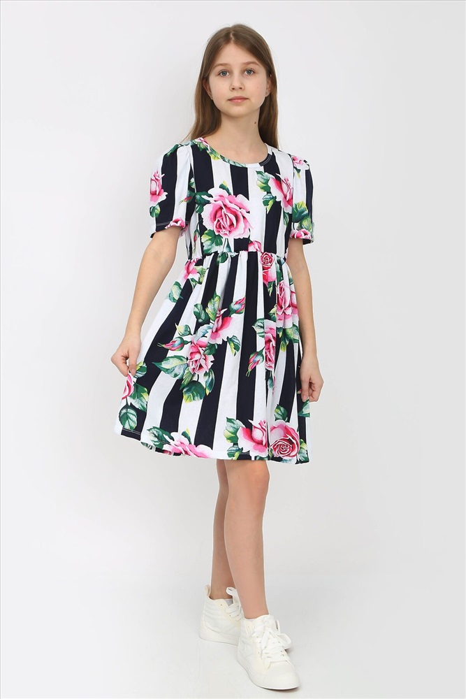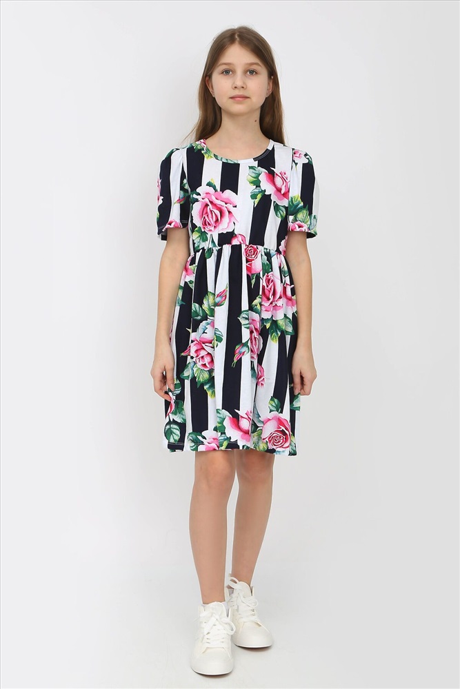 Страна производства: Россия Легкое, летнее платье станет любимой вещью у Вашего ребенка в гардеробе. Платье трикотажное для девочек выполнено из натурального 100% хлопка. На фото модель худенького телосложения, ее рост 142 на ней платье 146. Платье отрезное расклешенное, имеет приталенный силуэт и короткий рукав-фонарик. В нашем каталоге представлен большой выбор ярких и неповторимых расцветок с оригинальным принтом. Платье повседневное детское имеет широкий размерный ряд, что позволит подобрать девочке любой комплектации. Будь она худенькая, больших размеров, полная. Платье школьное подходит девочкам среднего роста, высоким или не высоким. Платье подростковое нарядное будет отличным подарком на 1 сентября, день рождение. Платье миди на лето отличный вариант для фотосессии, похода в школу, садик, на прогулку. Платье вечернее пляжное с открытыми руками отличный вариант одежды на осень весну зиму лето. Летом благодаря тому, что материал очень легкий ребенку не будет жарко в нем. В прохладное время года поверх платья можно накинуть кофту, джинсовку, свитер, куртку. Платье свободное средней длины идеальный вариант для праздников, повседневной носки, на свадьбу, похода на пляж.