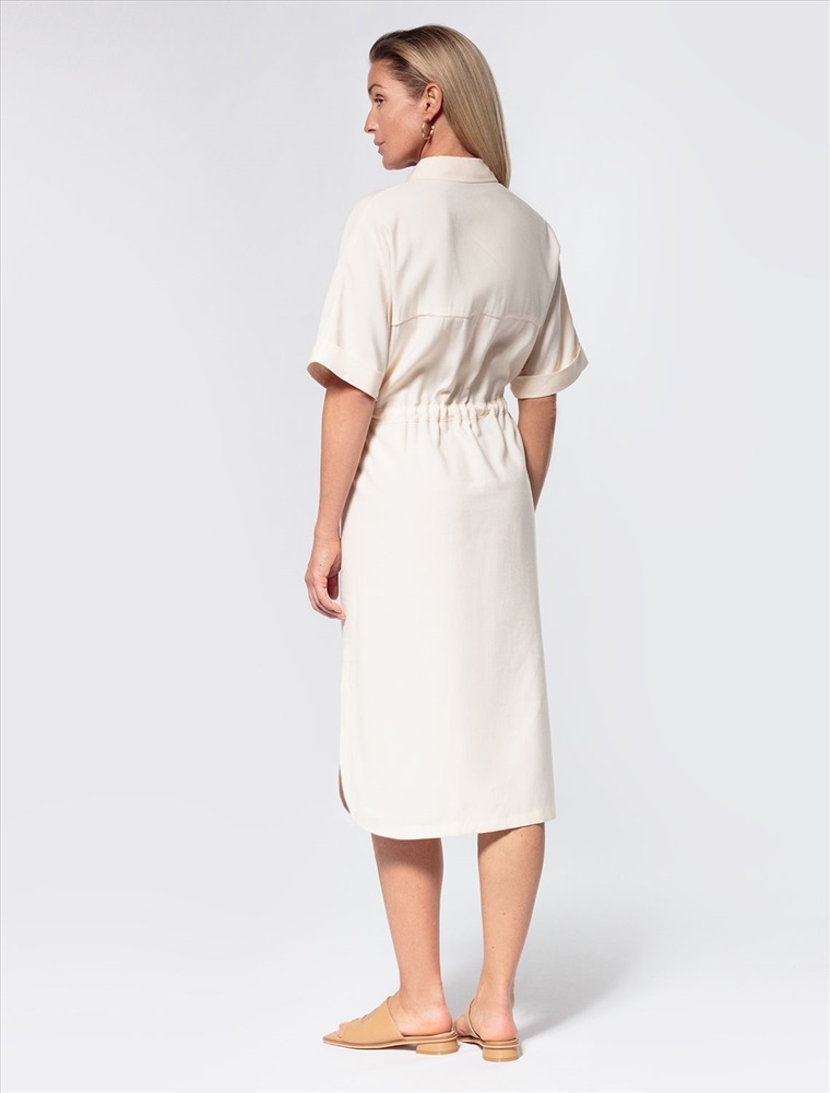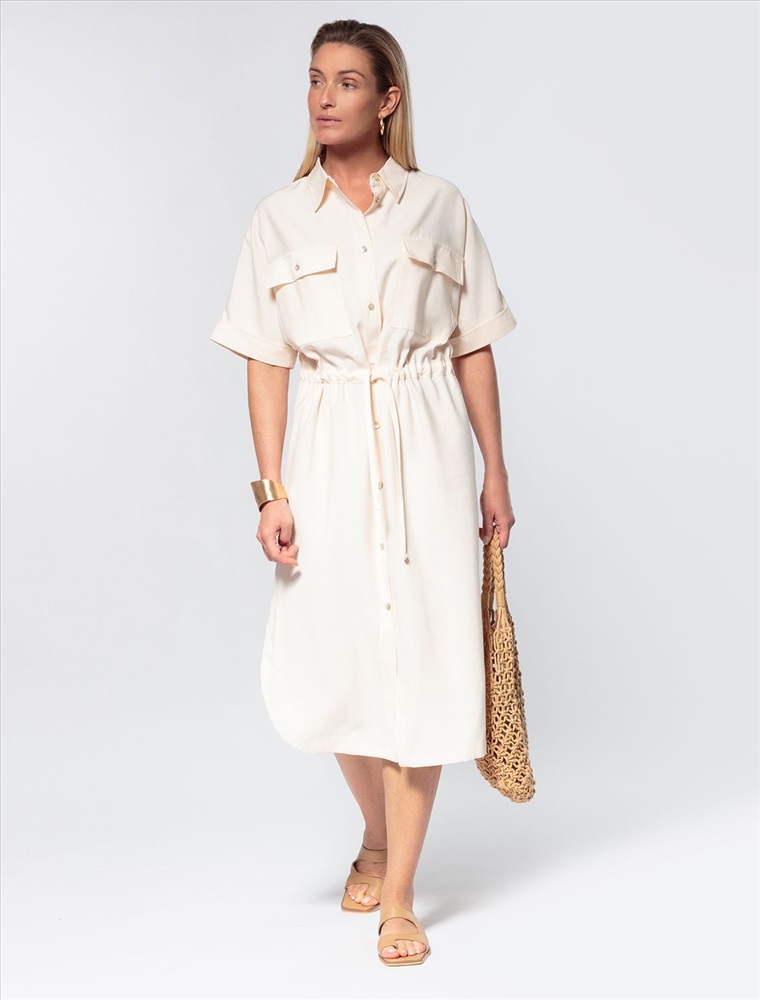 Платье-рубашка выполнено из плотного лиоцелла. Модель дополнена двумя накладными карманами в стиле сафари с пуговицами из натурального перламутра. Свободный силуэт не сковывает движений. Талия подчеркнута регулируемым поясом-шнуром. По бокам разрезы. Добавление синтетических волокон в составе изделия предотвращает сминаемость. Изделие сохранит свой безупречный внешний вид в течении долгого времени.