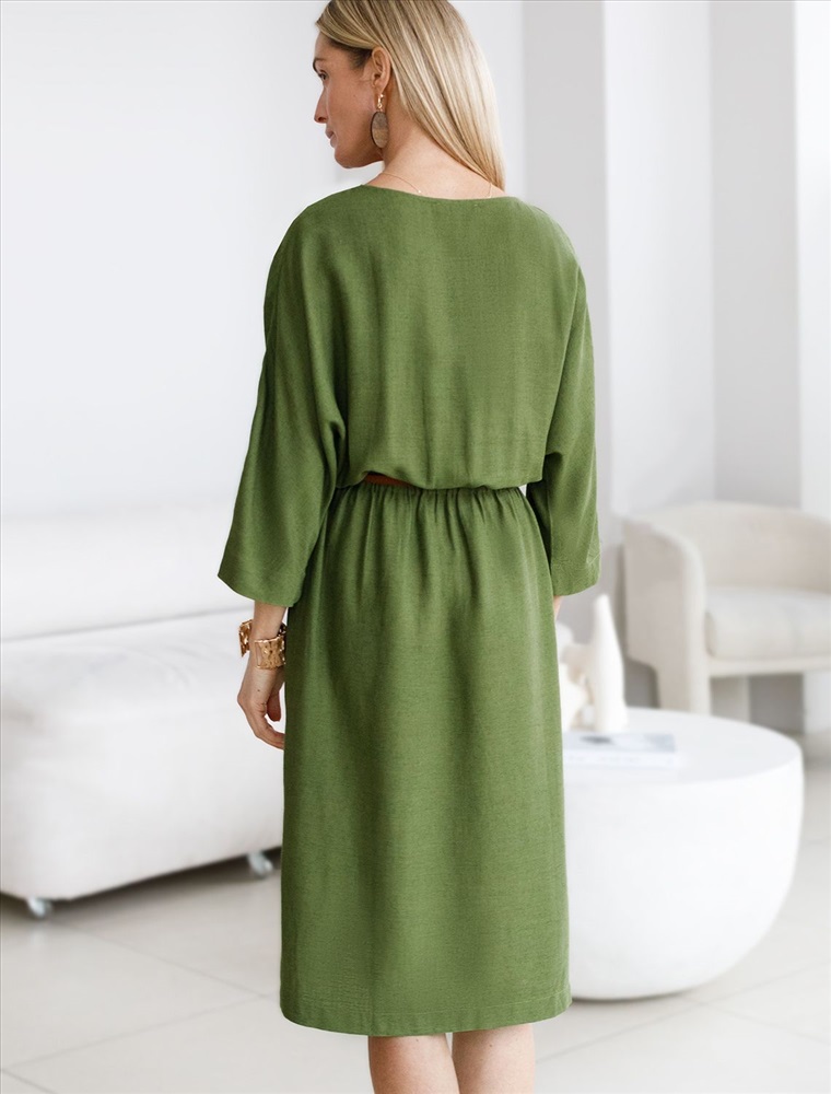 Платье с цельнокроеным рукавом изо льна с вискозой