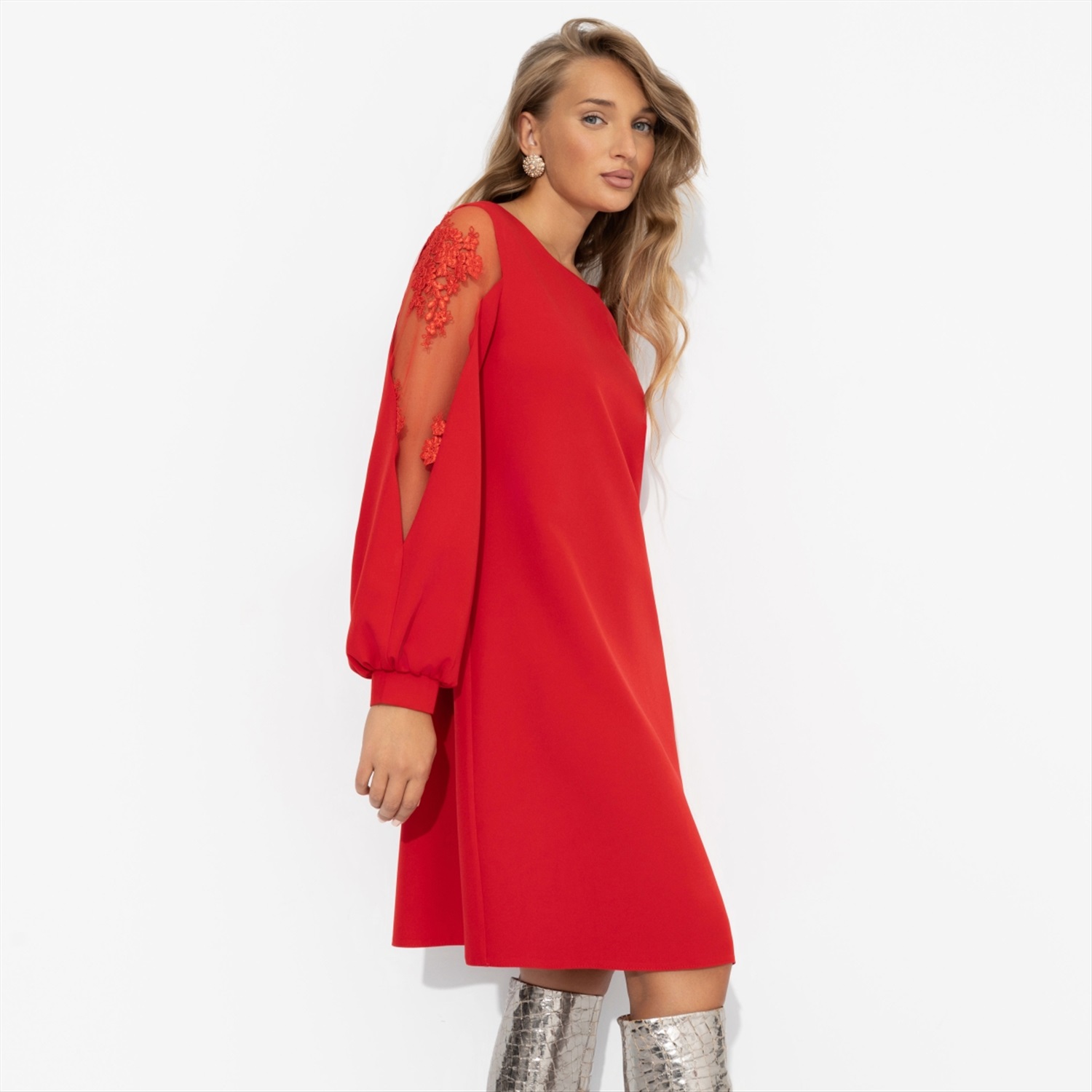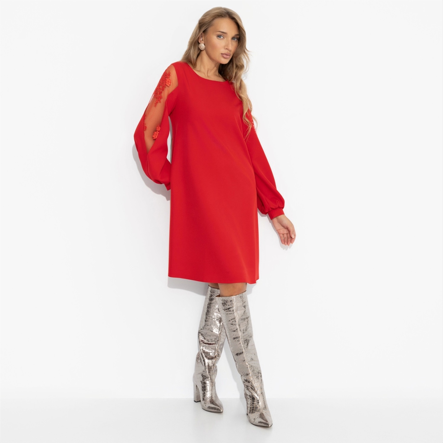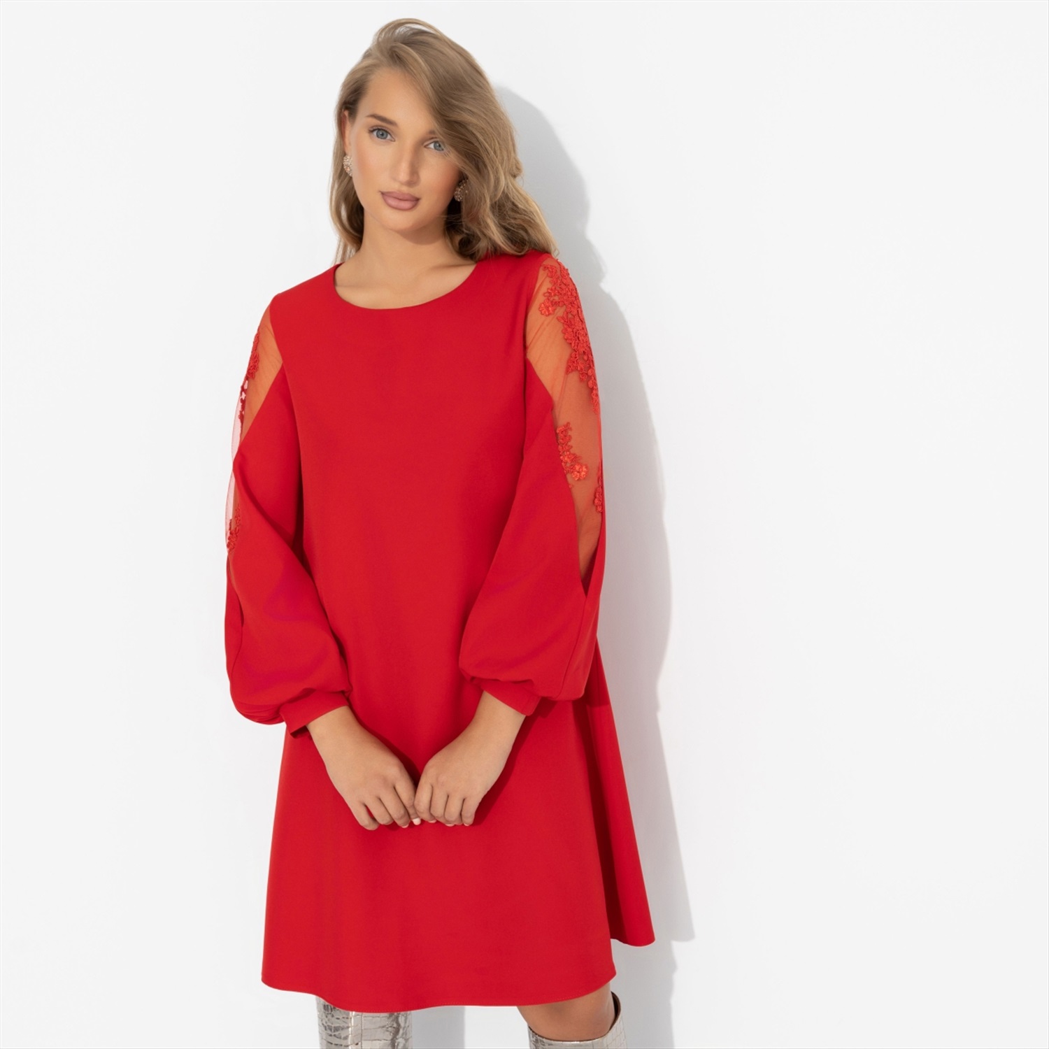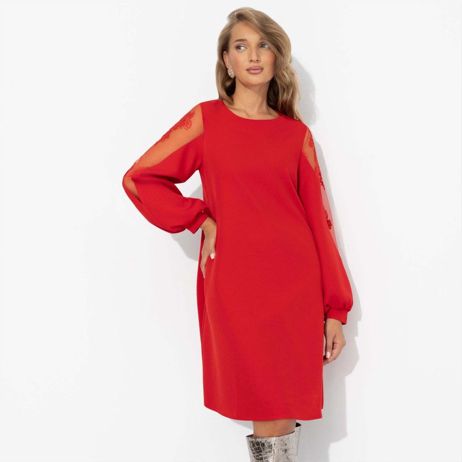 ТН ВЭД: 6104430000 Состав: «Барби» (95% п/э, 5% эластан) Плотность ткани: Средняя Тип ткани: Текстиль Вид застежки: Нет Карманы: Нет Основной цвет ткани: Красный Отрезная талия: Нет Подклад: Нет Резинка по талии: Нет Рисунок/раппорт: Нет, все изделия идентичны Сезон: Круглогодичный Силуэт: Свободный