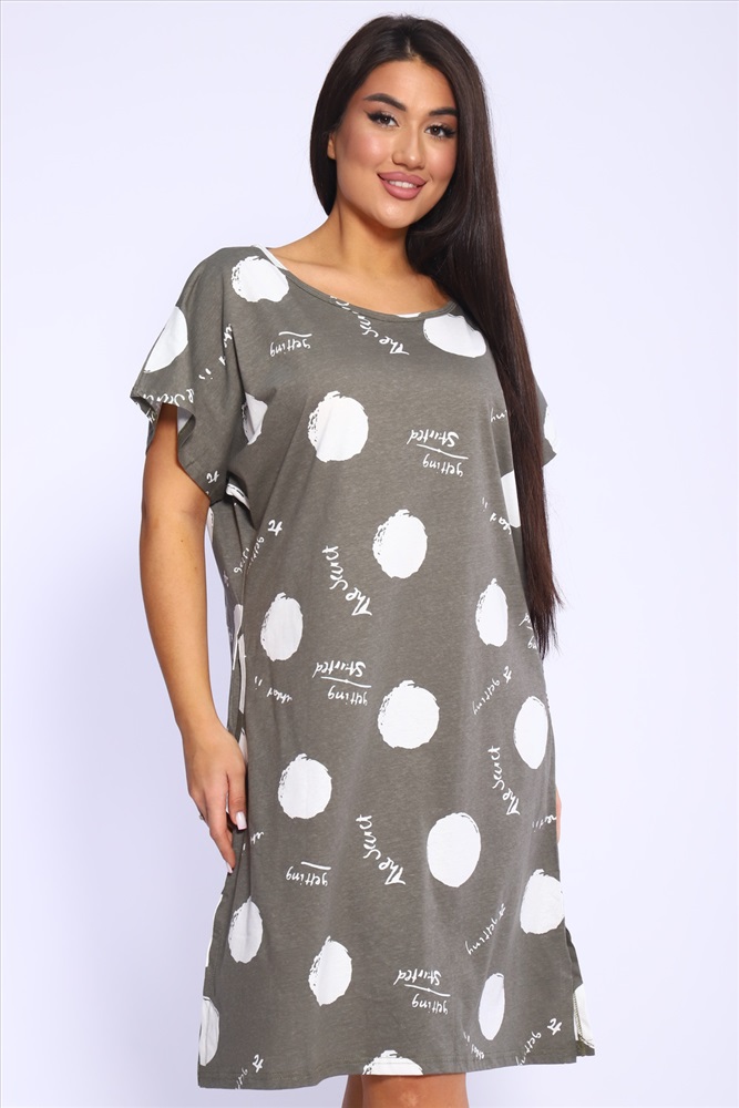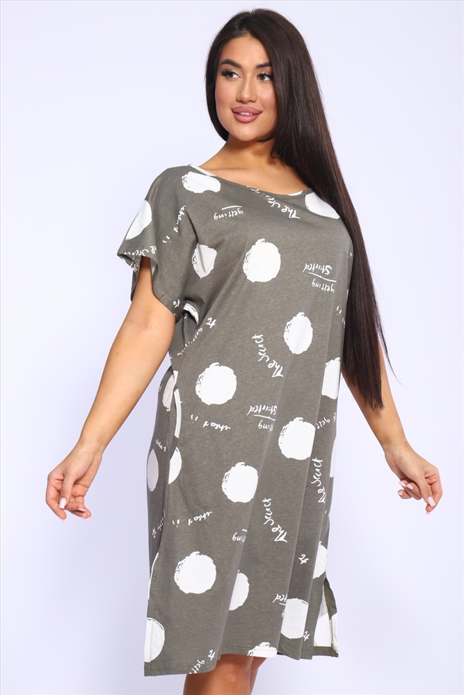 Состав: 100% хлопок Модель: Платье с рисунком горох Арт. 1057 Тип товара: платье Материал: кулирка | кулирка Бренд: Vesta' Длина: средняя длина Карман: боковые Назначение: для дачи | для дома НДС: Без НДС Отделка: с карманами Рисунок: геометрия | горошек | надпись Рукав: короткий рукав Сезонность: лето | осень | весна Силуэт: свободный Стиль: домашний Воротник: без воротника Застежка: без застежки Платье женское плюс сайз - больших размеров и свободного фасона. Ткань плотная, не просвечивает, при этом дышит и создает чувство легкости и невесомости. Благодаря спущенной линии плеча и увеличенной пройме платье не сковывает движений. Длина изделия: ниже колена. Высокое качество ткани ( 100% хлопок) и пошива. Широкий размерный ряд. Назначения платья может быть домашнее и повседневное. Таблица размеров и веса