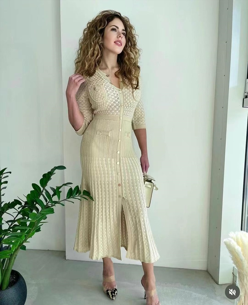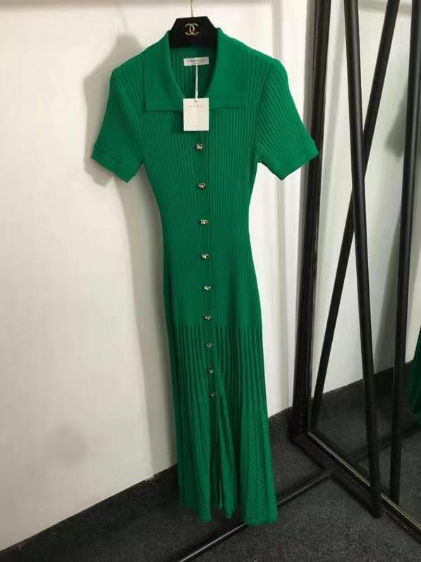 Sandr* новый стиль, изготовленный на заказ, пуговицами из глубокого морского жемчуга, французское элегантное облегающее трикотажное платье с коротким рукавом, длинная юбка, цвет белый, зеленый, черный, SML