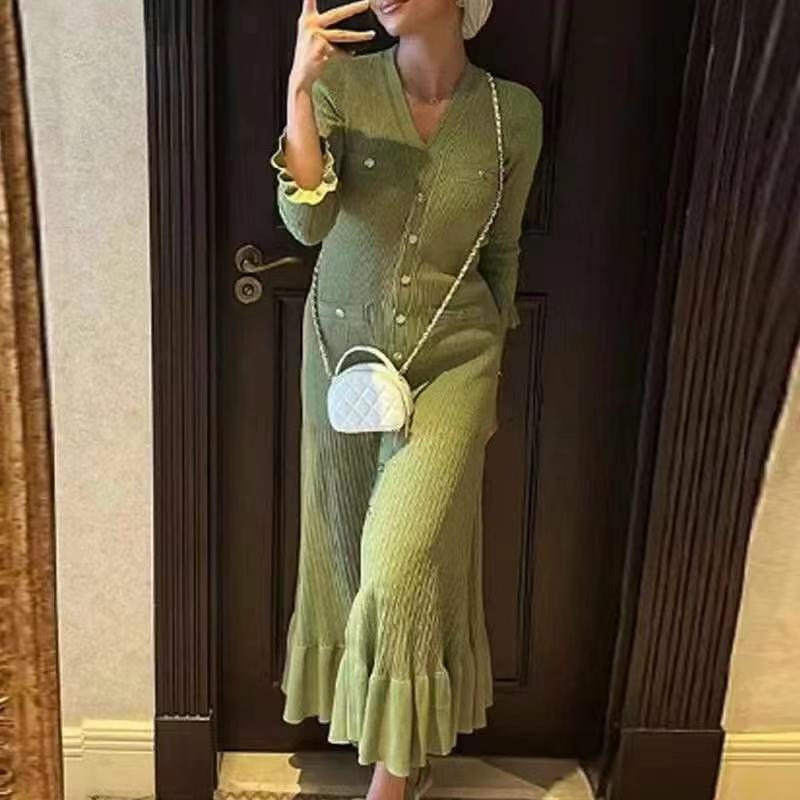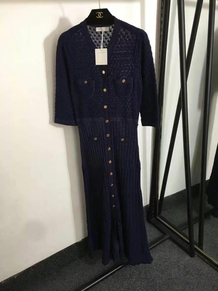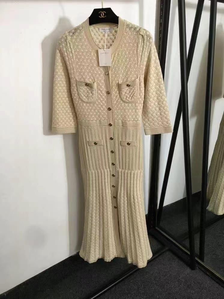 Sandr* новый стиль, изготовленный на заказ, пуговицами из глубокого морского жемчуга, французское элегантное облегающее трикотажное платье с коротким рукавом, длинная юбка, цвет белый, зеленый, черный, SML