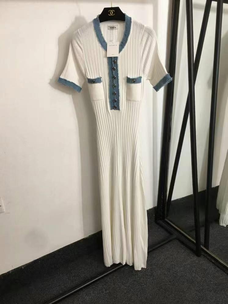 Sandr* новый стиль, изготовленный на заказ, пуговицами из глубокого морского жемчуга, французское элегантное облегающее трикотажное платье с коротким рукавом, длинная юбка, цвет белый, зеленый, черный, SML
