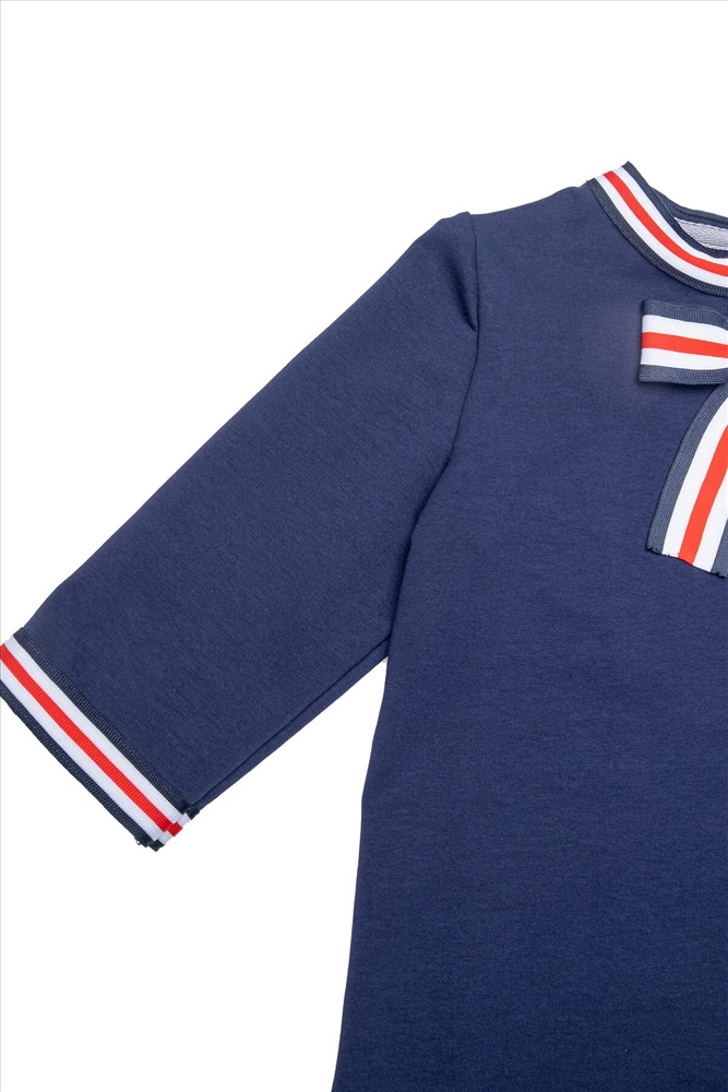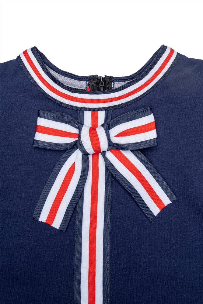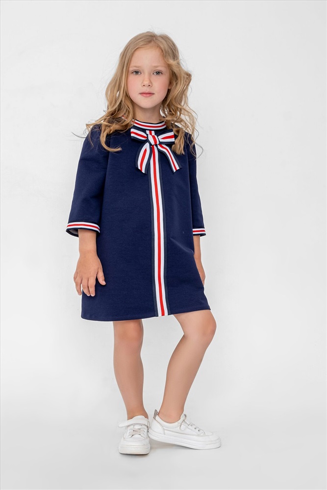 Страна производства: Россия Элегантное платье для девочки для особых случаев и для повседневного наряда. Стильное платье выполнено из трикотажного полотна двунитки, отделано трехцветной тесьмой, с потайной молнией по спинке. Простое в уходе, легко стирается и утюжится. По мере роста ребёнка может носиться как туника с брюками.