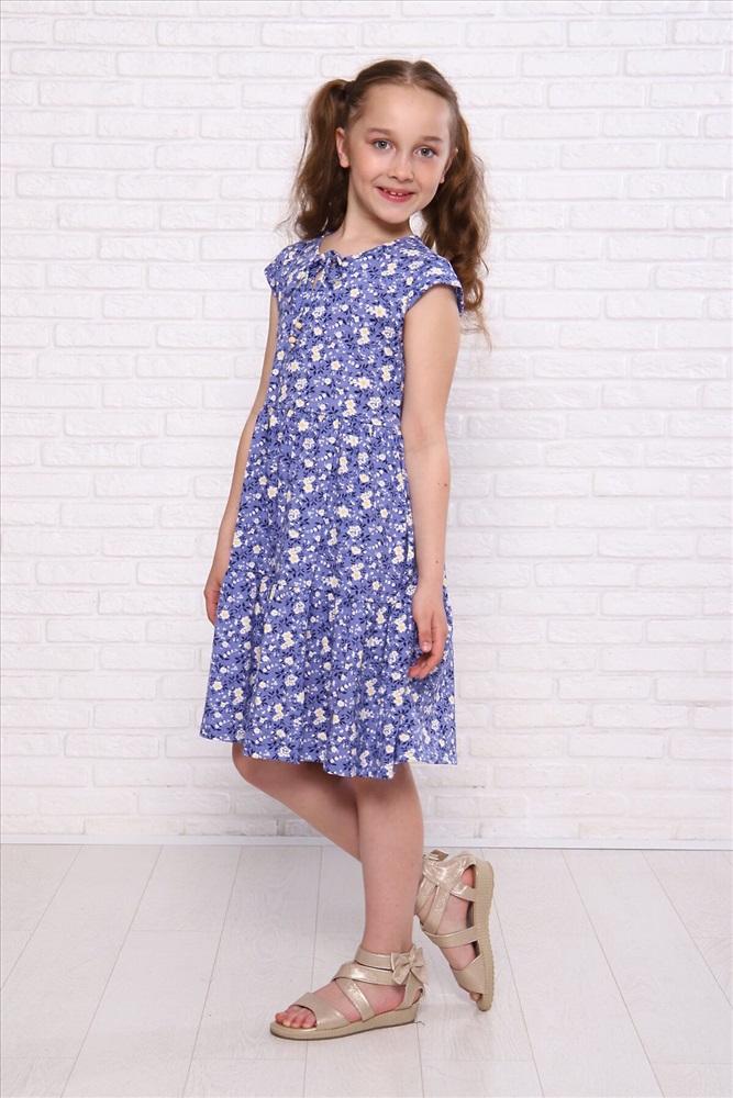 ID товара: 926157 Состав: 100% Хлопок Сезон: Весна/Лето Длина: Миди Фасон: Полуприталенный Рукав: Крылышки Вырез горловины: Округлый Основная ткань: Хлопок Стиль: Повседневный Вид ткани: Кулирка Страна бренда: Россия Страна производства: Россия Платье для девочек дошкольного и младшего школьного возраста, из трикотажного полотна кулирная гладь с рисунком. Платье расширенного силуэта, отрезное чуть выше линии талии, с воланом, с рукавом крылышком. Спереди, под линией горловины, вырез в виде треугольника. Горловина и проймы окантованы. Спереди горловина на завязках. По линии проймы, под рукавом проложена отделочная строчка. Низа рукавов и платья подогнуты. Комментарии к товару