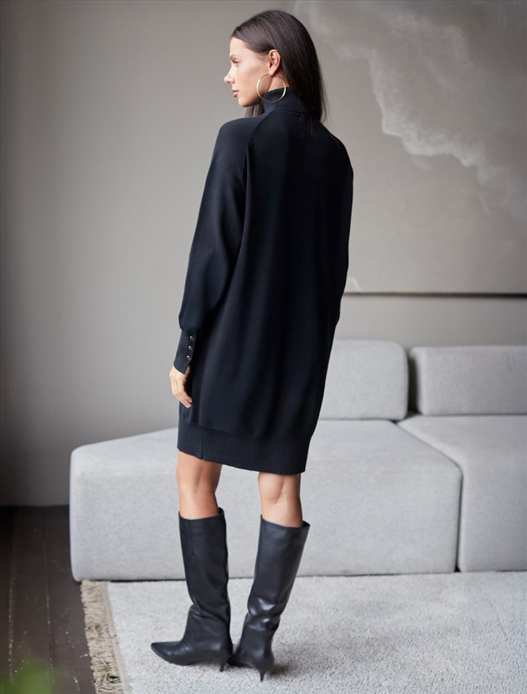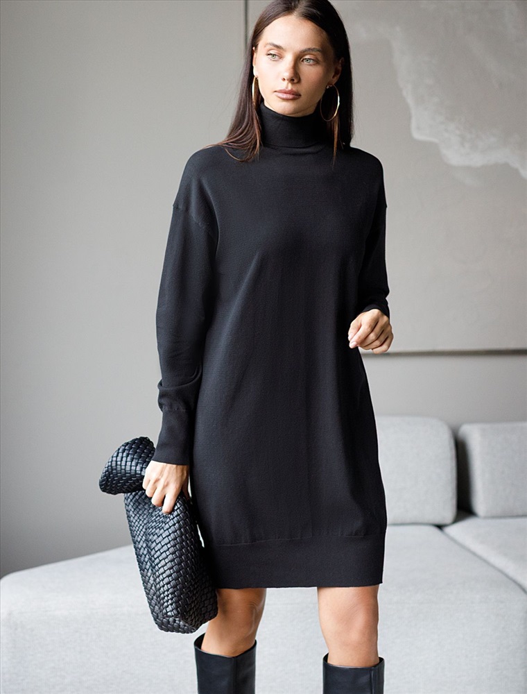 Плотность: 12 GG Параметры модели на первом фото: Рост 170, бюст 83, талия 64, бедра 88 Размер товара на первом фото: 42 Платье тонкой вязки выполнено из хлопка. Лаконичная модель с высоким воротом как у водолазки дополнена манжетами с золотистыми пуговицами. Изделие свободно сидит по фигуре и не сковывает движений. Мягкая пряжа очень приятная к телу не колется и сохраняет тепло при этом не перегревая. Комментарии к товару