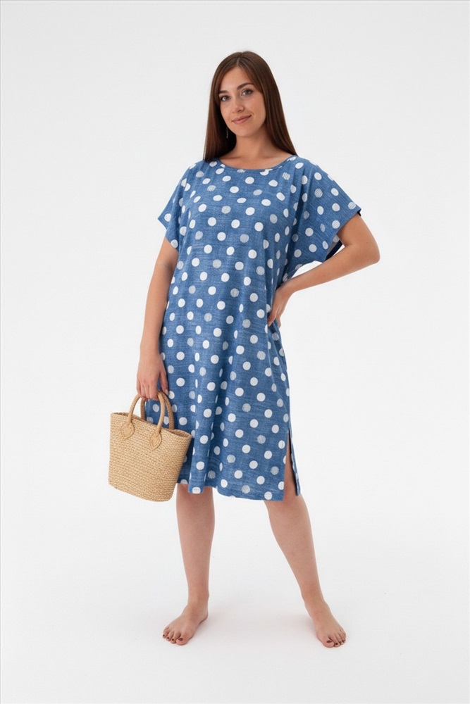 Состав: хлопок 100% Модель: Платье в горох арт. 796 Тип товара: платье Материал: кулирка | кулирка Бренд: Vesta' Длина: средняя длина Карман: без карманов Назначение: для дома НДС: Без НДС Рисунок: горошек Рукав: короткий рукав Сезонность: лето | осень | весна Силуэт: свободный Скидка: любая Стиль: домашний | пляжный | повседневный Воротник: без воротника Застежка: без застежки Универсальное платье в горох, подойдет для девушек oversizе размеров. Таблица размеров и веса