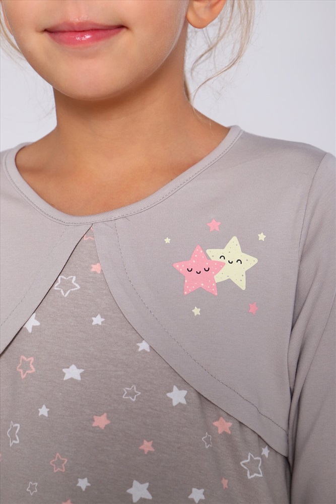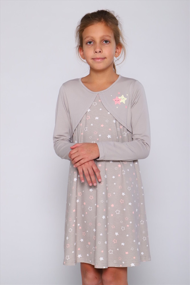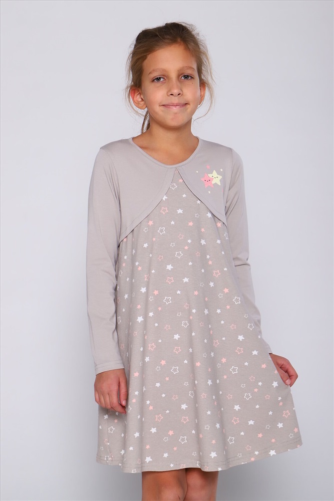 Страна производства: Россия Это красивое и нежное платье для девочки с длинным рукавом обязательно оценят маленькие модницы. Платье расширенного силуэта, с втачным рукавом, с центральной застежкой на петлю и пуговицу на спинке. Верх платья выполнен из однотонного полотна, низ платья с рисунком. Спереди отрезные кокетки, имитация болеро. Спинка с отрезной верхней частью. Идеально подходит для повседневной носки дома и в детский сад, также для летних прогулок, для похода в гости или на праздник. Данная модель сшита из качественного трикотажа с добавлением в состав хлопка и лайкры, используемый материал не теряет форму после многократных стирок, мягкий и приятный к телу, устойчив к износу, не закатывается. Для сохранения первоначальных свойств изделия, важно соблюдать рекомендации по уходу.