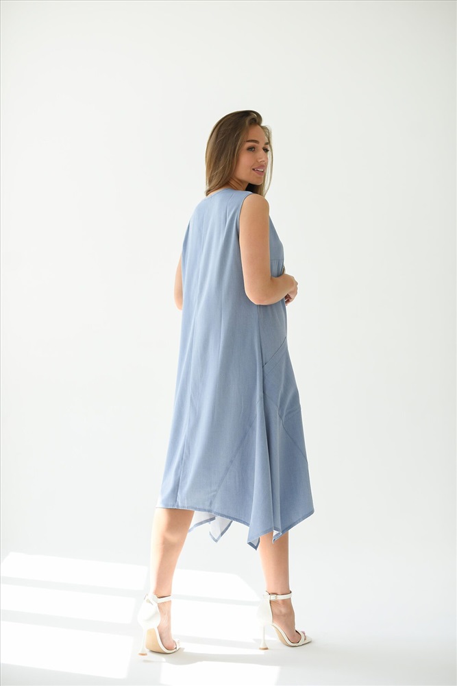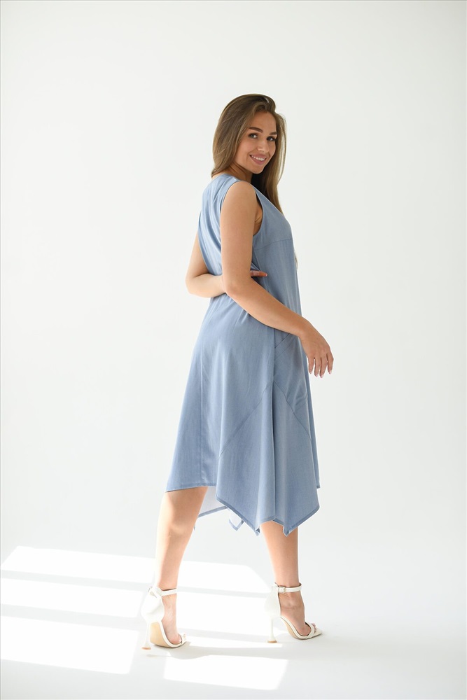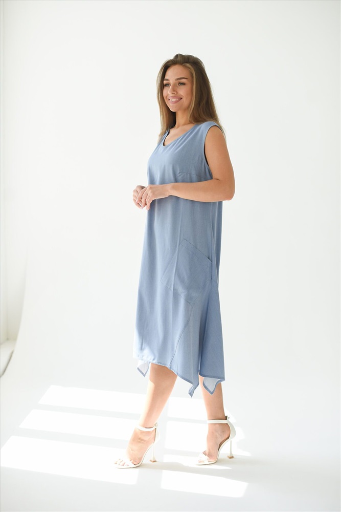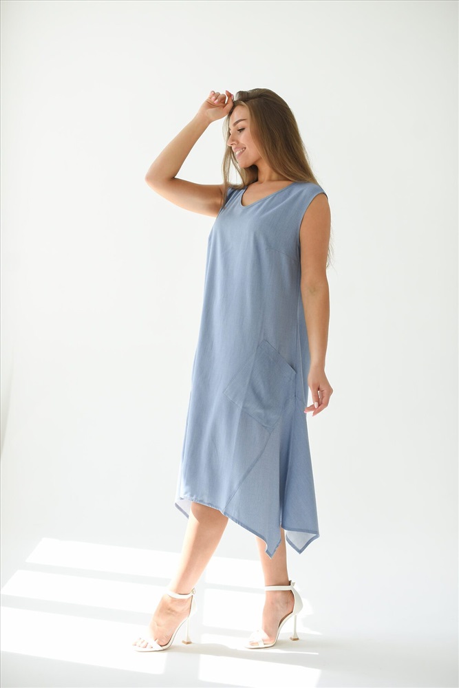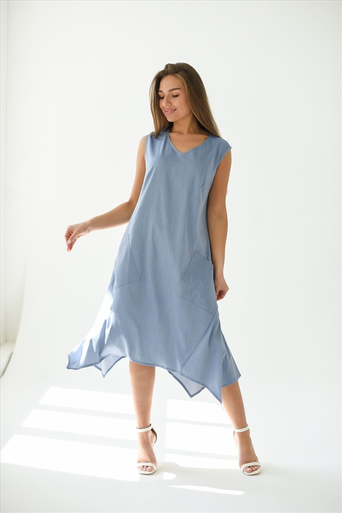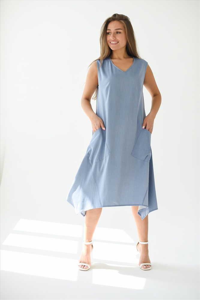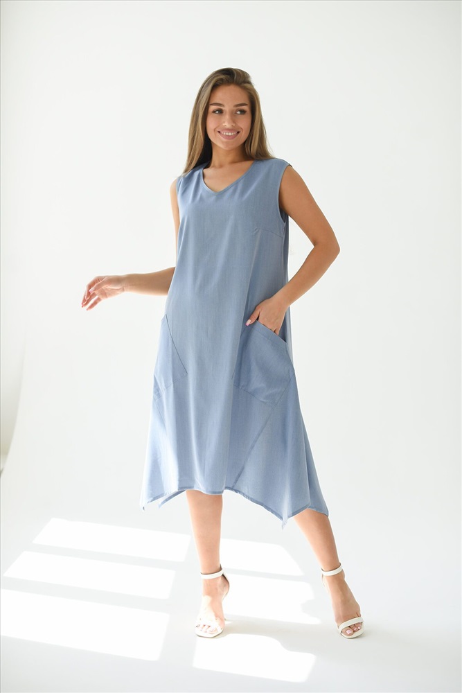 Платье - трапеция из ткани Тенсел с накладными карманами. Эффектный крой, необычный фасон украсит любой образ. В таком платье Вы будите чувствовать себя комфортно даже в самый жаркий летний день. Летнее платье универсально, Вы можете создать легкий спортивный образ с кедами или романтичный, надев босоножки на каблуке.