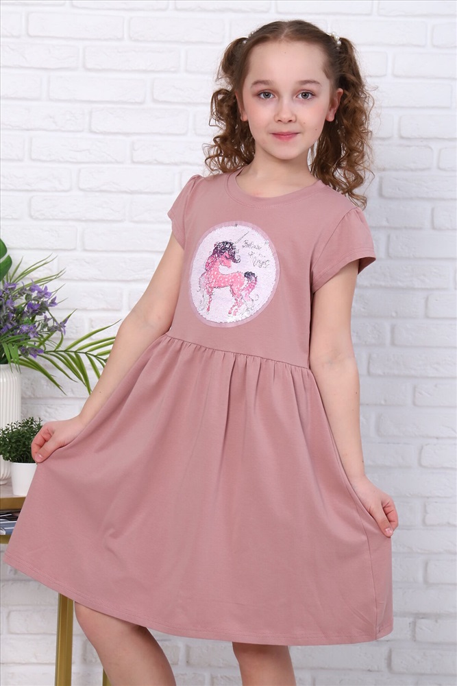 ID товара: 900137 Состав: 92% Хлопок; 8% Лайкра Сезон: Весна/Лето Длина: Миди Фасон: Свободный крой Рукав: Короткий Вырез горловины: Округлый Основная ткань: Хлопок Вид ткани: Кулирка с лайкрой Страна бренда: Россия Страна производства: Россия Это красивое и яркое платье для девочки обязательно оценят маленькие модницы. Модель декорирована нашивкой с пайетками, которые меняют цвет одним движением руки и создают веселое настроение. Идеально подходит для повседневной носки дома и в детский сад, также для летних прогулок, для похода в гости или на праздник. Данная модель сшита из качественного трикотажа. Для сохранения первоначальных свойств изделия, важно соблюдать рекомендации по уходу. Комментарии к товару