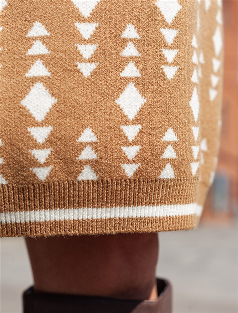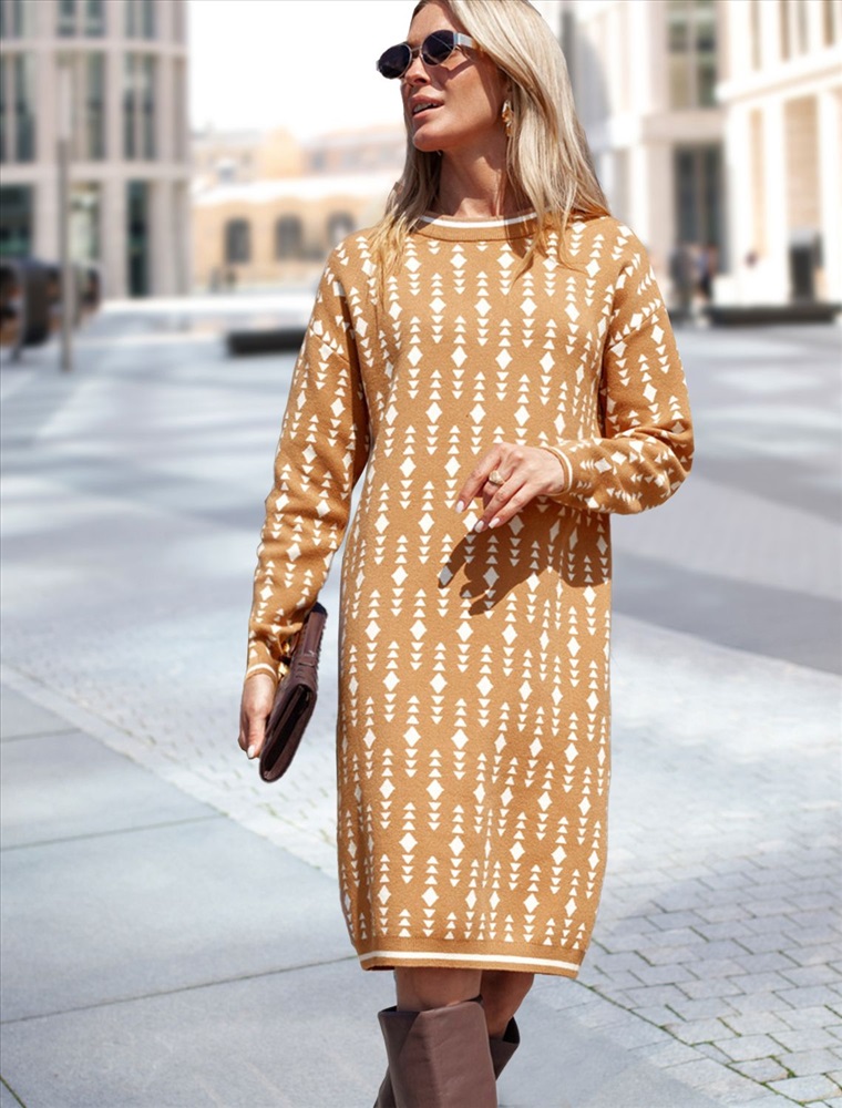 Платье жаккардовой вязки выполнено из мягкой пряжи на основе вискозы с добавлением кашемира. Модель свободного силуэта подходит для любой фигуры. Нежная пряжа очень комфортно ощущается на теле, сохраняя оптимальное тепло при этом не перегревая. Совет стилиста: жаккардовое платье отличная инвестиция в базовый гардероб, которая поможет создать дорогие образы. Носите с высокими сапогами удлиняя силуэт или плотными колготками.