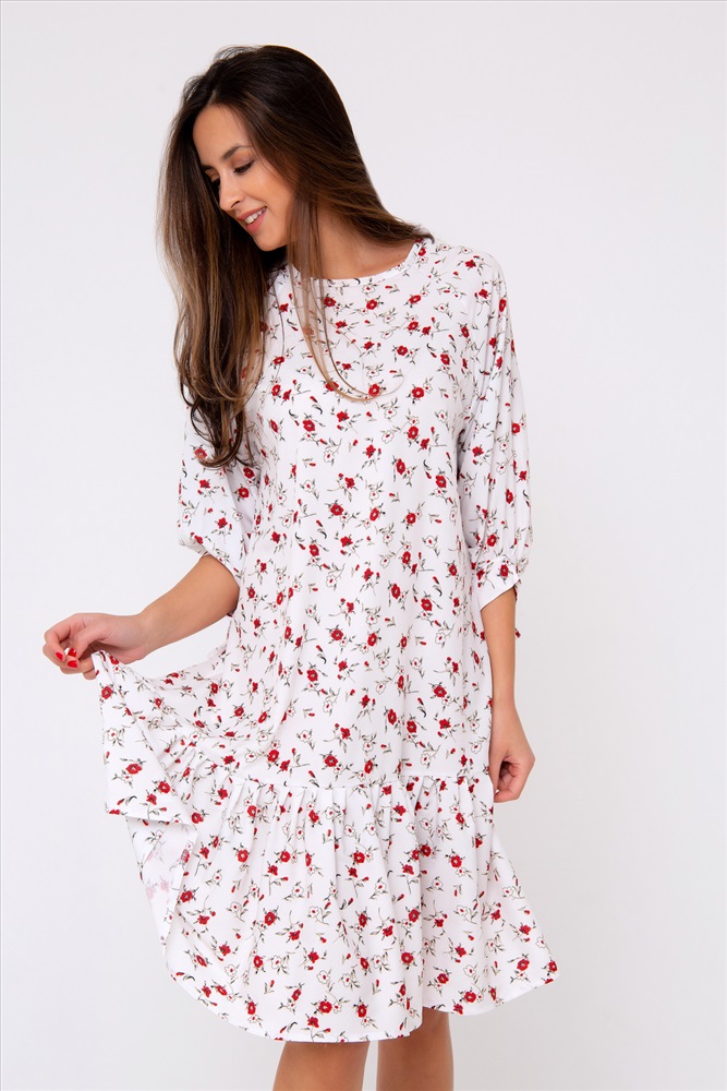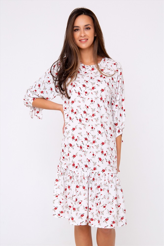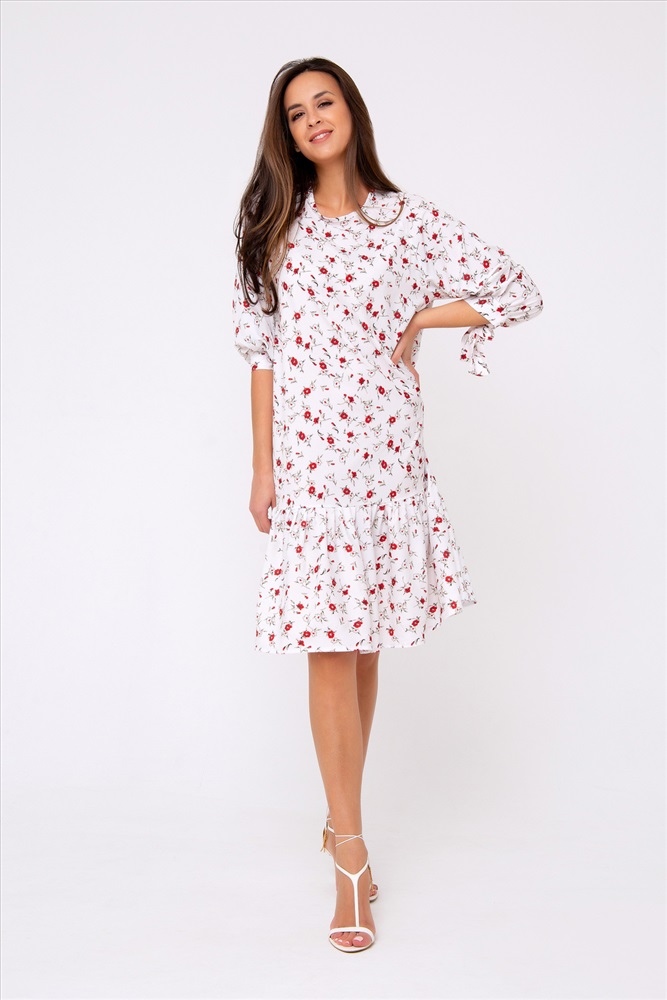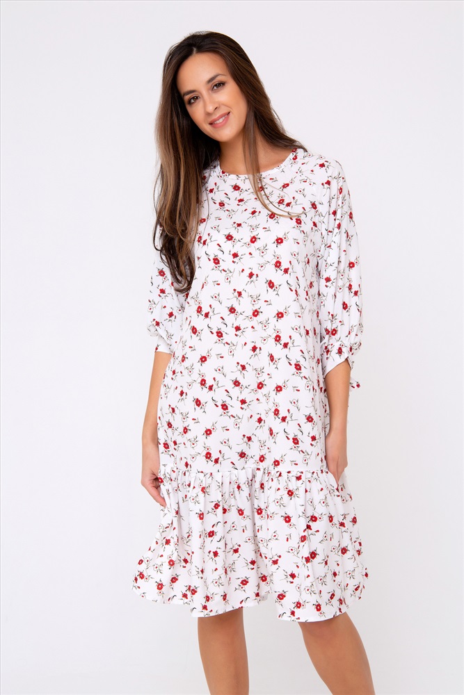 Застежка: без застежки Новая премиум коллекция от Рапоза отличается весенними образами и пастельными тонами! Особенный лоск! Платье-миди свободного кроя выполнено в нежнейшем молочно-белом цвете. Женственность модели подчеркивает оригинальный принт в стиле petit fleur по всей длине изделия. Свободный крой подчеркнет только достоинства фигуры и добавит легкости и игривости всему образу в целом. Рукав - реглан. Горловина округлая. Модель дополнена воланом по краю изделия. Приобретите легкость, комфорт и свободу на каждый день, ведь эта вещь полюбится Вами с первого прикосновения. Все товары бренда Raposa производятся в России, используются ткани только премиального качества. Ограниченная коллекция только для этой весны! Длина изделия 98 см. Рост модели на фото 173 см (+ каблук).