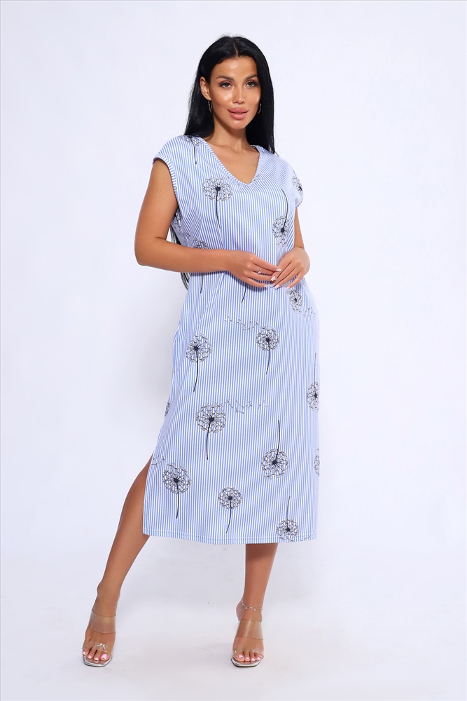 Состав: хлопок 100% Модель: Платье женское 82061 Тип товара: платье Материал: кулирка пенье компакт | кулирка пенье компакт Бренд: Натали Суслова Длина: средняя длина Карман: боковые Отделка: с карманами Рисунок: полоска | цветы Рукав: короткий рукав Сезонность: лето Силуэт: прямой | свободный Стиль: повседневный Воротник: без воротника Застежка: без застежки Платье женское из гипоаллергенного, хлопкового, высокого качества компакт пенье трикотажа. Модель слегка приталенного силуэта, фигурный V- образный вырез горловины, безрукавное, в боковых швах удобные карманы, внизу по бокам высокие разрезы. Принт в виде тонкой продольной полоски с изображением легкого, изящного соцветия одуванчика придаст стройности и женственности вашему образу. Летнее миди-платье комфортное, стильное, универсальное подходит для повседневных мероприятий, деловых встреч, а так же вечерних прогулок. Таблица размеров и веса