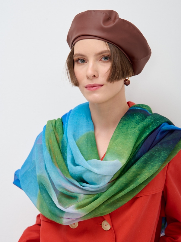 Размер: 130 x 130 cм Состав: Вискоза, Хлопок, Шелк Состав: Шелк 15% Хлопок 45% Вискоза 40% Цвет: Голубой, Зеленый Большой, красивый двусторонний платок с рисунком в стиле "арт-деко"и необычной текстурой ткани. Края изделия украшены бахромой. Только ручная стирка. Комментарии к товару