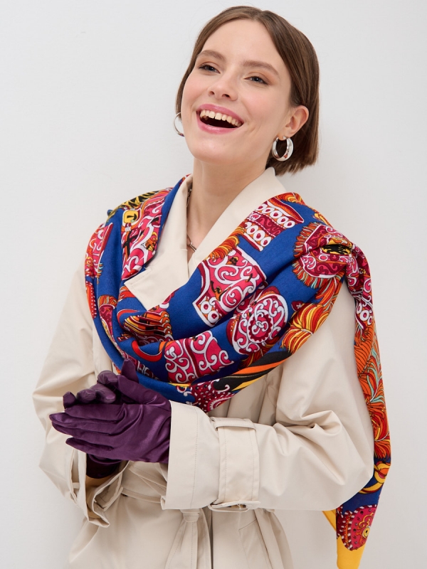 Размер: 130 x 130 см Состав: Шерсть 40% Хлопок 35% Акрил 25% Цвет: Желтый Принт: Цветочный, Орнаментальный Большой, яркий платок из тонкой шерсти. Изделие можно носить как нарядную шаль,накинув на плечи,или уложив его вокруг шеи в небольшую косынку. Комментарии к товару