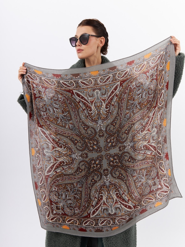 Большой, мягкий, тонкий и очень нежный двусторонний платок с рисунком. Ткань жатая. Только ручная стирка.