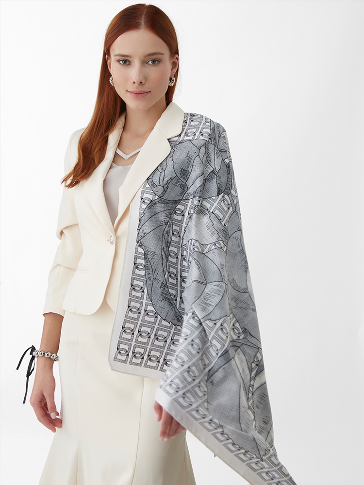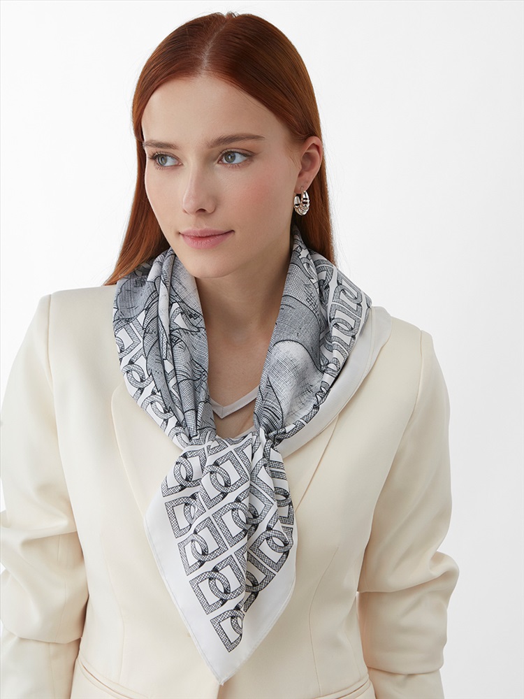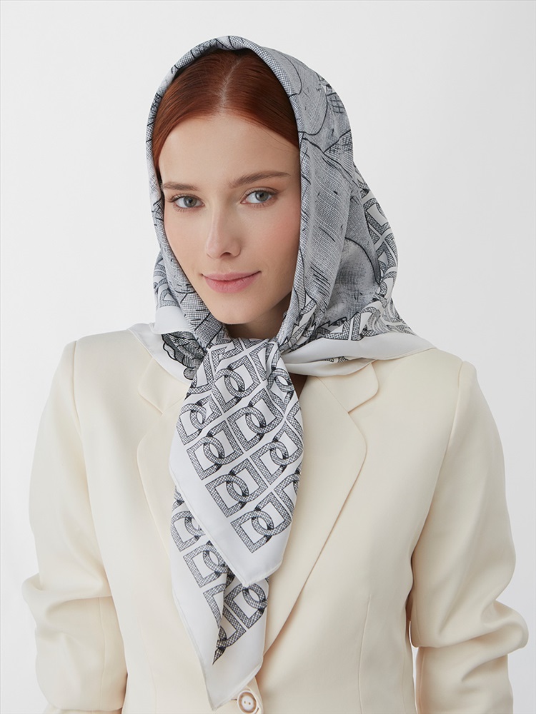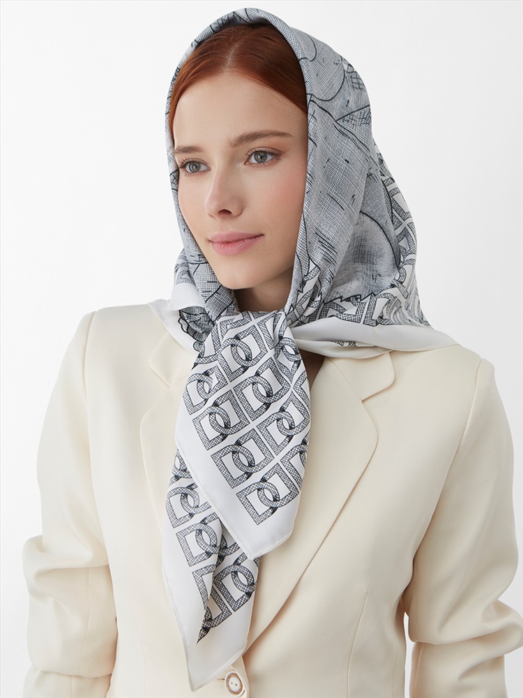 Цвет: Белый, Серый, Светло-серый Размер: 90 х 90 см Состав: 75% модал, 25% шелк Состав: Шелк, Модал Принт: Геометрический Сезон: Демисезон, Осень, Весна Стиль: Повседневный Большой, мягкий, тонкий и очень нежный платок с рисунком. Только ручная стирка. Комментарии к товару