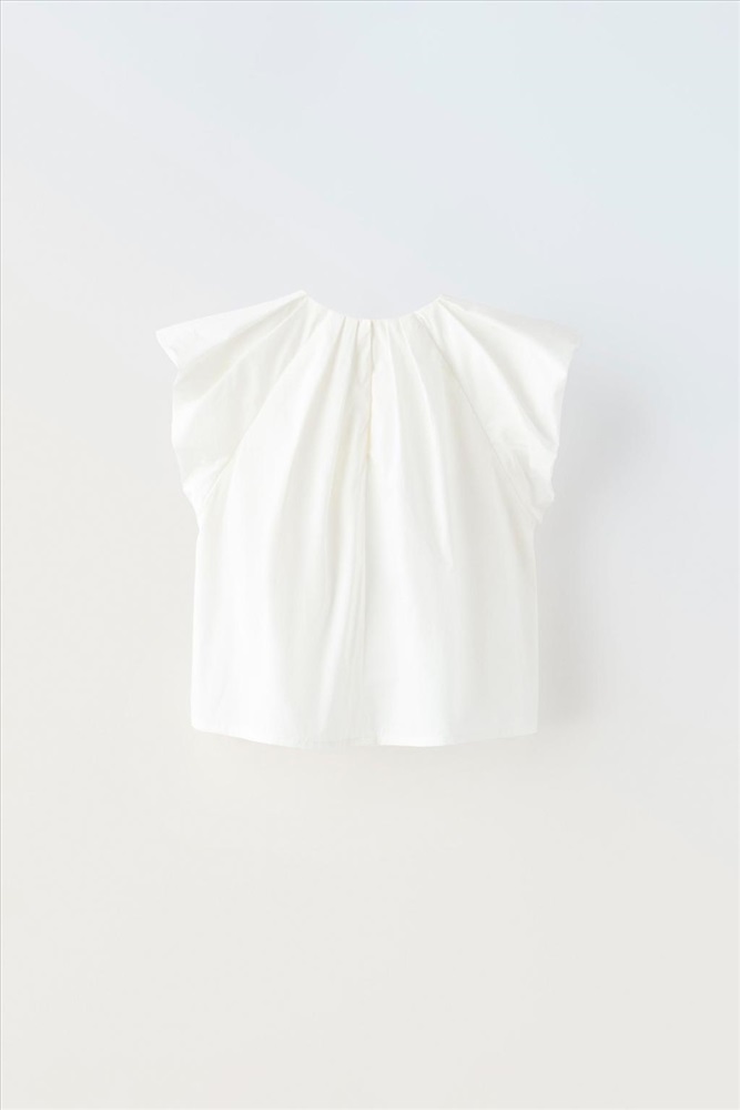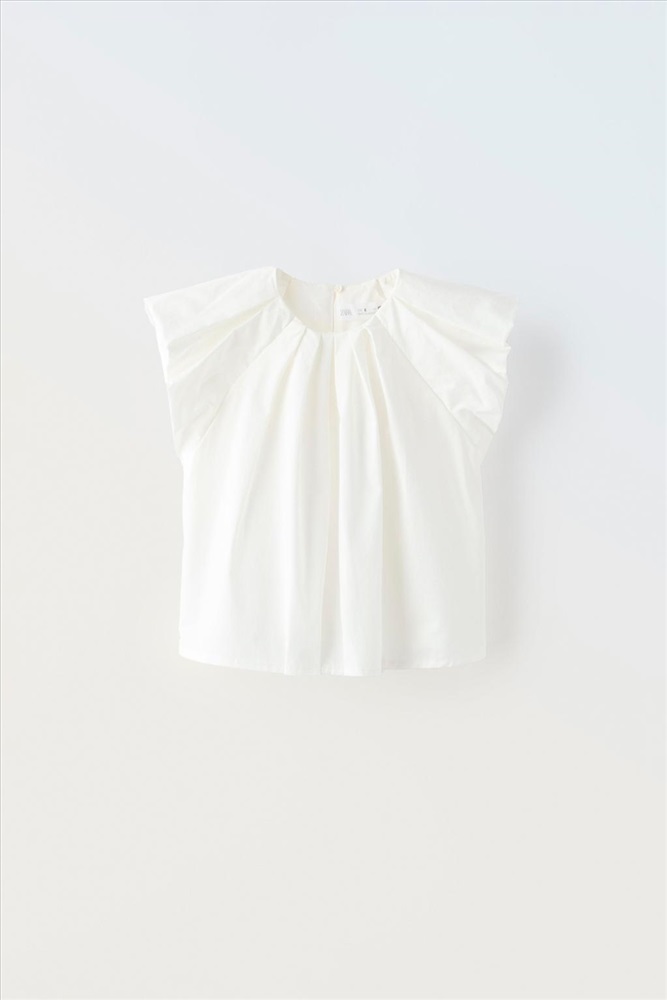 Sleeveless shirt with a round neck, pleated detail and a teardrop opening at the front and back.