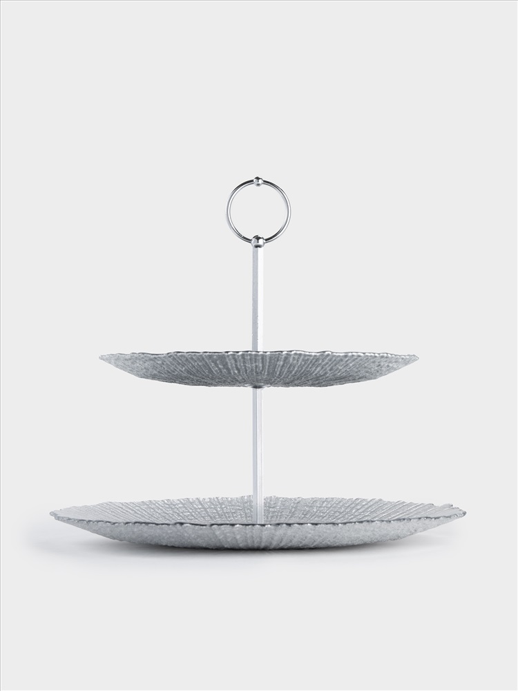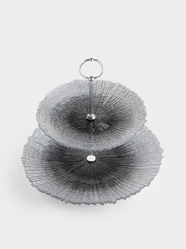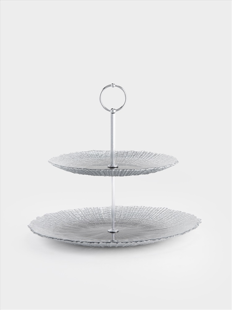 Подставка для пирожных, 2 яруса. Размер: 21х28/26 см. Материал: стекло, металл. Рекомендуется мыть вручную с применением мягких моющих средств. Не использовать для ухода абразивные чистящие средства и жесткие губки. Нельзя мыть в посудомоечной машине.