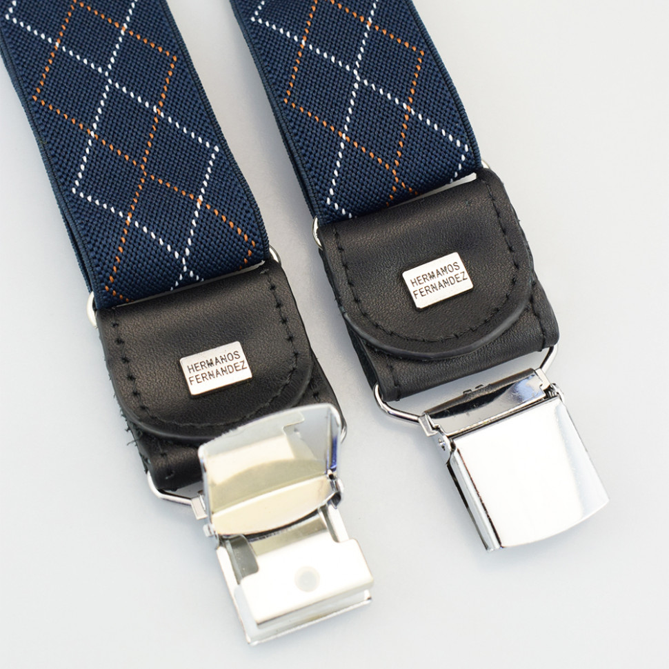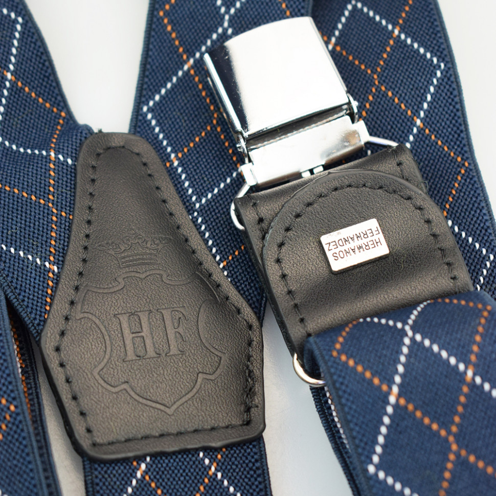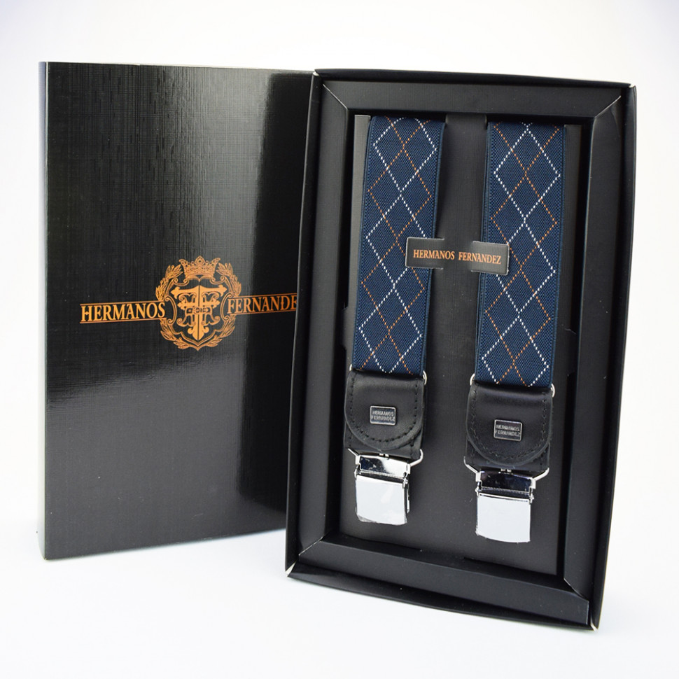 Ширина: 35 мм. Размер: от 44 до 58 Цвет: синий-оранжевый-белый Длина: 80-135 см Подтяжки в коробке.Ширина-35мм Регулируемая длина. Производство:"Hermanos Fernandez" Комментарии к товару