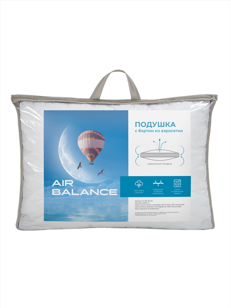 Состав: 50%хлопок/50%пэ Модель: Подушка Аэробаланс 45х65 с бортом, ПАБ-46-бс Тип товара: подушка Материал: поликоттон | поликоттон Бренд: Ившвейстандарт Назначение: для спальни Рисунок: однотонные Набивная подушка AIR Balance - это универсальная модель с бортиком, которая создана для ценителей комфортного сна на мягких подушках. Чехол подушки из смесового хлопка(50%хлопок/50%пэ) плотностью 115г/м2, Ткань воздухопроницаемая и в то же время износостойкая. Бортик выполнен из дублированной сетки. Сетчатая структура гарантирует активную циркуляцию воздуха внутри подушки. Наполнитель подушки - это самые современные инновационные материалы, не вызывающие аллергических реакций, распространения различных микроорганизмов, достаточно легки в использовании и в уходе. Волокна наполнителя гипоаллергенны, улучшают воздухообмен и сохраняют температурный комфорт. Стирка в стиральной машине. Таблица размеров и веса