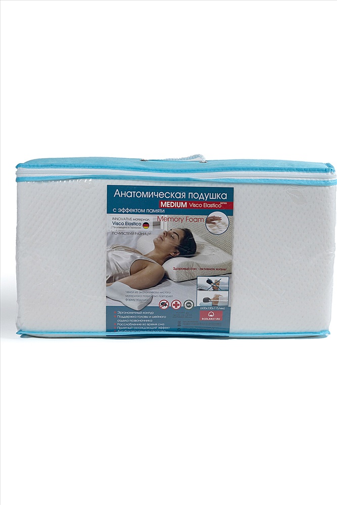 Наполнитель - Visco Латекс с эффектом памяти. Чехол - вентилируемый трикотаж 50% хлопок, 50% микрофибра. Плотность полотна трикотажа - 280гр/м2. Размер - 600х330х115/100мм. Анатомическая подушка МЕДИУМ с возможностью переворачивать ее под размер плеча. Благодаря анатомическому профилю подушки, спящий на ней человек принимает позу, в которой расслабляются мышцы и сосуды, стабилизируется кровоснабжение и подача кислорода в мозг. В результате сон протекает спокойно, без пробуждений и неудобств. Утром тело чувствует себя отдохнувшим и сильным, цвет лица здоровый, а настроение жизнерадостное. Пропадают проблемы с памятью, боли в суставах, в мышцах спины и шеи, а также утренние мигрени. Позволяя организму полноценно отдыхать, Вы регулируете обмен веществ. А от его стабильности зависит Ваш вес. Одно из свойств подушки МЕДИУМ - предотвращение храпа (в тех случаях, когда его причиной является неправильное положение тела и мышечная усталость). В правильной позе воздухоносные пути открыты и не препятствуют свободному дыханию. Для профилактики болезней опорно-двигательной системы. ВНИМАНИЕ!!! Расцветки в ассортименте.