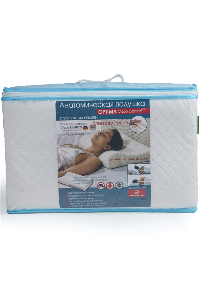 Сезонность: лето | осень | весна | зима Наполнитель - Visco Латекс с эффектом памяти. Чехол - вентилируемый трикотаж 50% хлопок, 50% микрофибра. Плотность полотна трикотажа - 280гр/м2. Размер - 482х325х120/95мм. Классическая анатомическая подушка ОПТИМА с двумя валиками и впадиной между ними. Она создана для спокойного, приятного, освежающего отдыха. Вы почувствуете, что сон стал глубже, положение головы - удобнее, а самочувствие - лучше. Ее форма позволяет мышцам и сосудам расслабиться, обеспечивает нормальный кровоток и подачу кислорода в мозг. Благодаря правильной физиологической позе Ваш подбородок не притягивается к шее, что препятствует образованию морщин на шее. Крепкий и глубокий сон позволяет выспаться за более короткий срок. Вы просыпаетесь бодрым, свежим и полным сил. ОПТИМА будет особенно полезна людям, которые прежде чем уснуть, долго ищут удобную позу, страдают от утренних головных болей, растяжений в мышцах и проблем с позвоночником. Для профилактики болезней опорно-двигательной системы