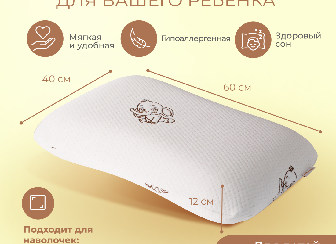 Модель: Подушка Асветида 40х60х12 Kids(детская) с эффектом памяти (мягкая)