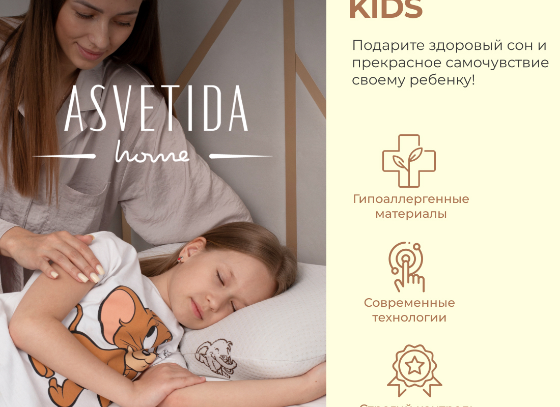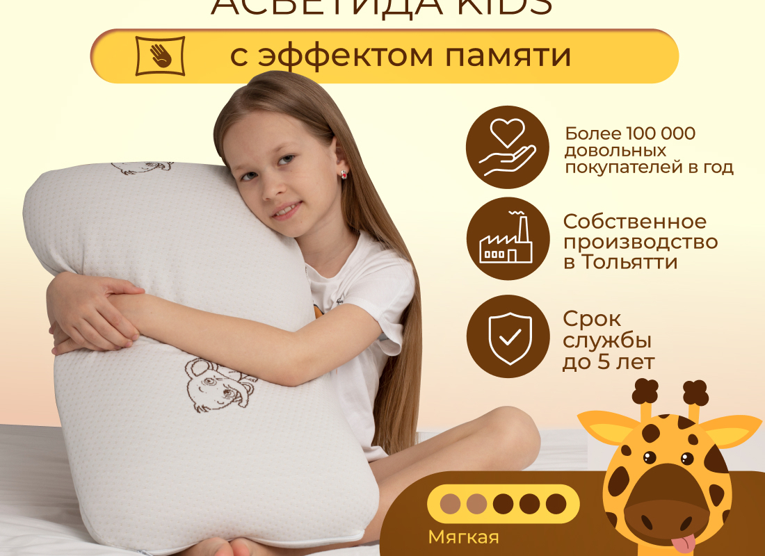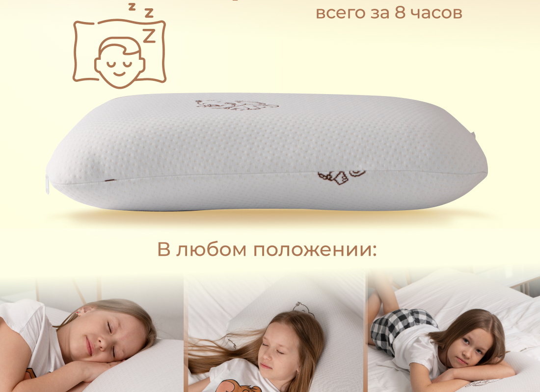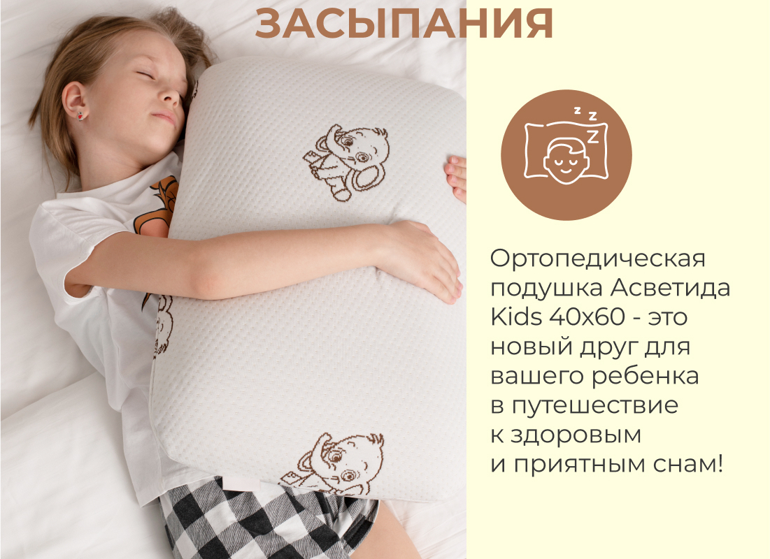 Сезонность: лето | осень | весна | зима Подушка анатомическая с эффектом памяти модель Kids (40х60 см) самая мягкая модель из всех представленных подушек Асветида. Создавалась и разрабатывалась специально для детей, подростков и школьников. Обеспечивает правильное положение головы и шеи для сна. Благодаря вспененной структуре наполнителя, анатомическая подушка эластичная, что способствует комфортному и здоровому сну Вашего ребенка. В составе пена с эффектом памяти это инновационный материал, который называется пенополиуретан. Благодаря материалу Мемори, или как его еще называют Мemory Foam, мышцы шеи полностью расслабляются во время сна, а шейный отдел позвоночника остается в правильном положении. Анатомическая форма позволяет принять комфортное положение во время сна на боку, на животе или на спине. Абсолютно гипоаллергенная, так как она изготовлена из дышащих экологически чистых материалов. Благодаря этому поддерживается комфортная температура покрытия во время сна.