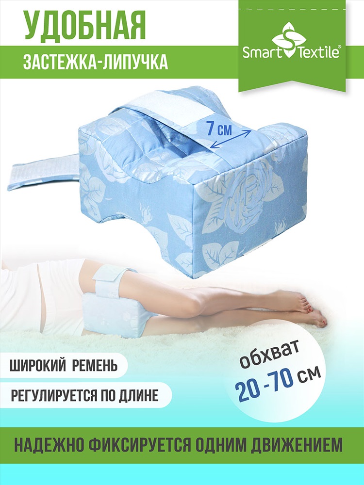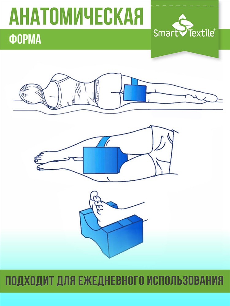 1. Правильная поза для сна. Во время сна на боку, когда ноги соединены в области коленей, происходит давление коленных суставов друг на друга, что чревато негативными последствиями для здоровья суставов, болевыми ощущениями после сна. Если же колени не соединены, а ноги перекрещены, то такое положение негативно сказывается на крестцовом и поясничном отделах позвоночника неправильное, изогнутое положение приводит к болям в спине, возникновению заболеваний, связанных с неправильным положением позвоночника во время сна. Поэтому и рекомендуется использование анатомической подушки для ног для сохранения правильного положения позвоночника.