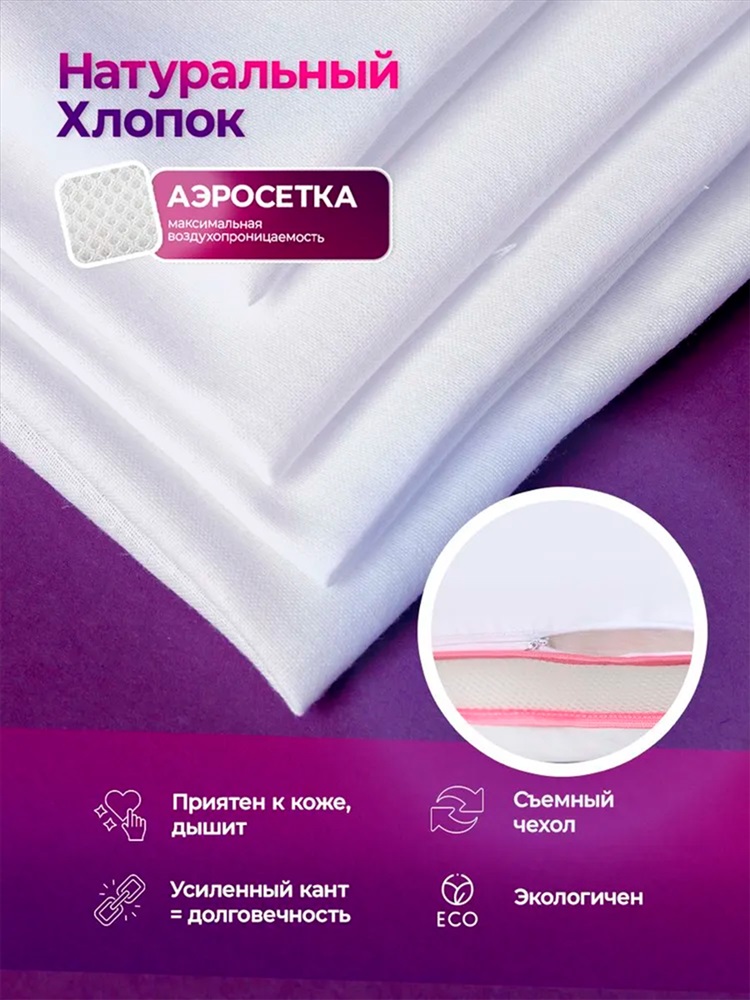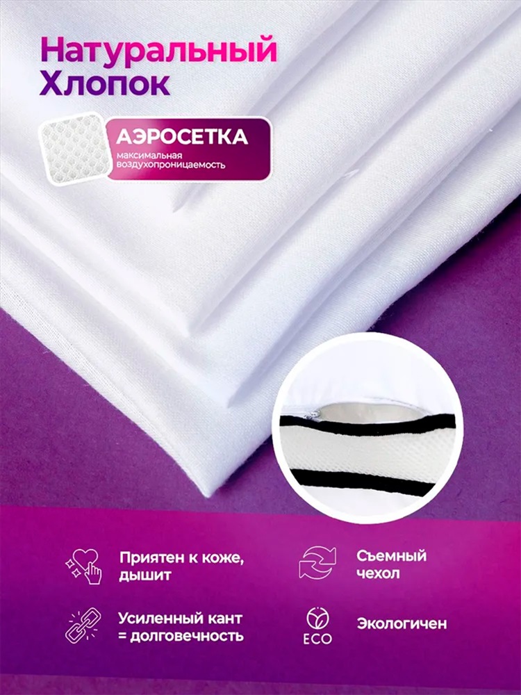 Модель: Подушка для сна 50х70 с аэросеткой, средняя жесткость, анатомическая, наполнитель 3D волокно, гипоаллергенная, съемный чехол из хлопка